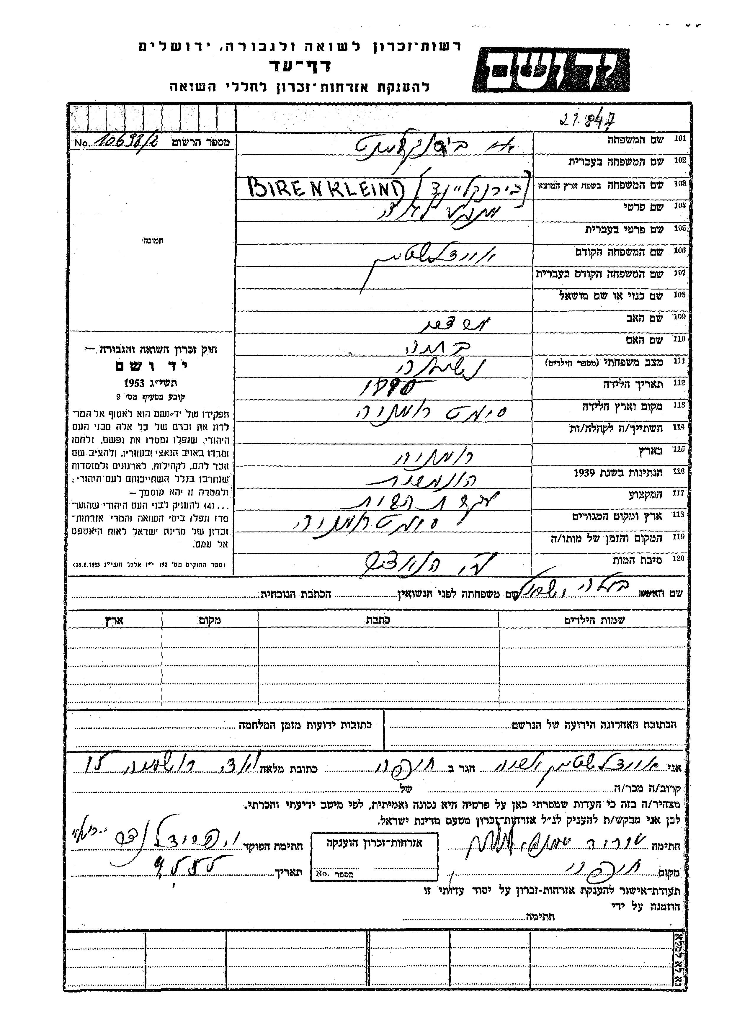 Yad Vashem - Pages of Testimony Names Memorial Collection