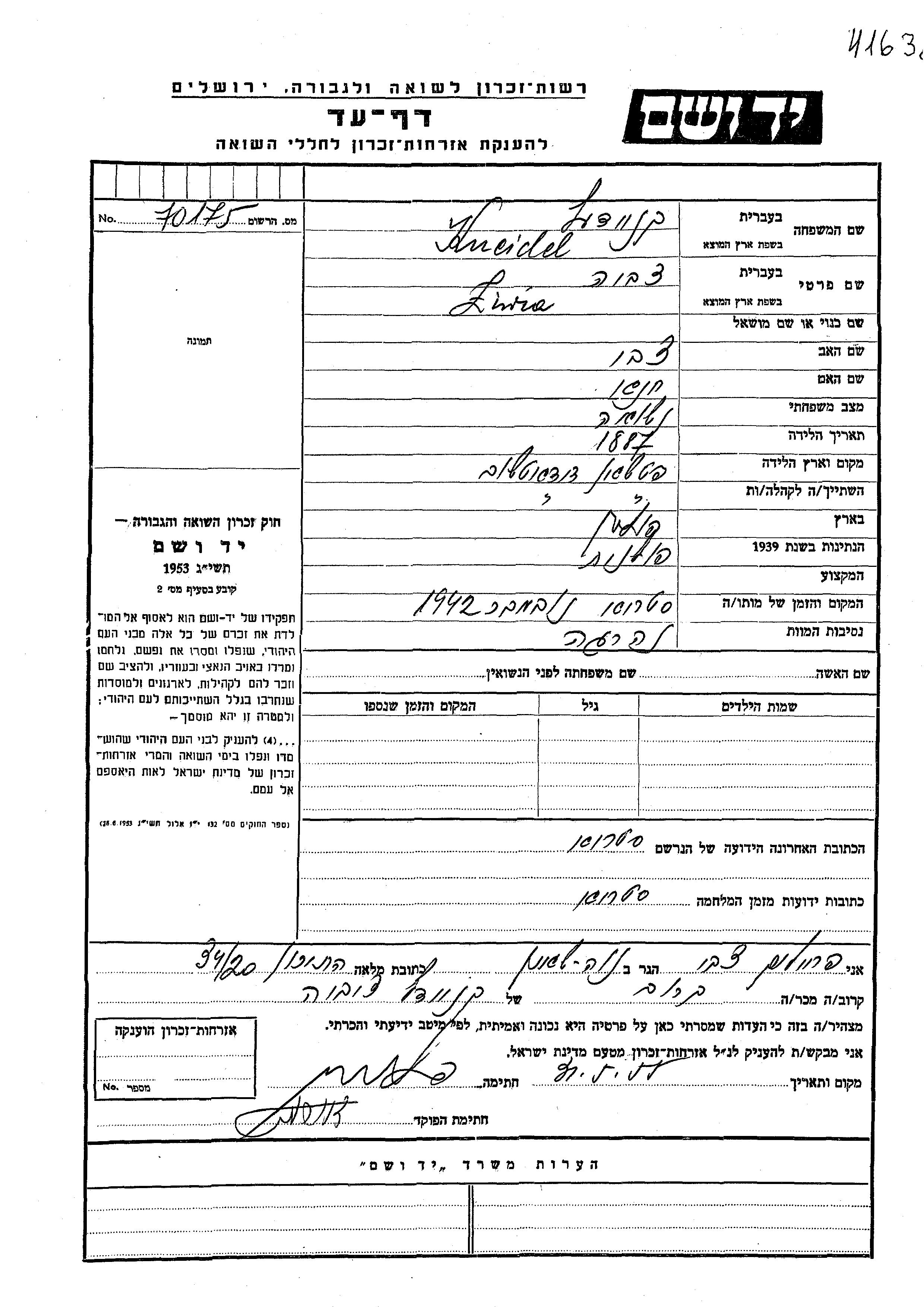 Yad Vashem - Pages of Testimony Names Memorial Collection