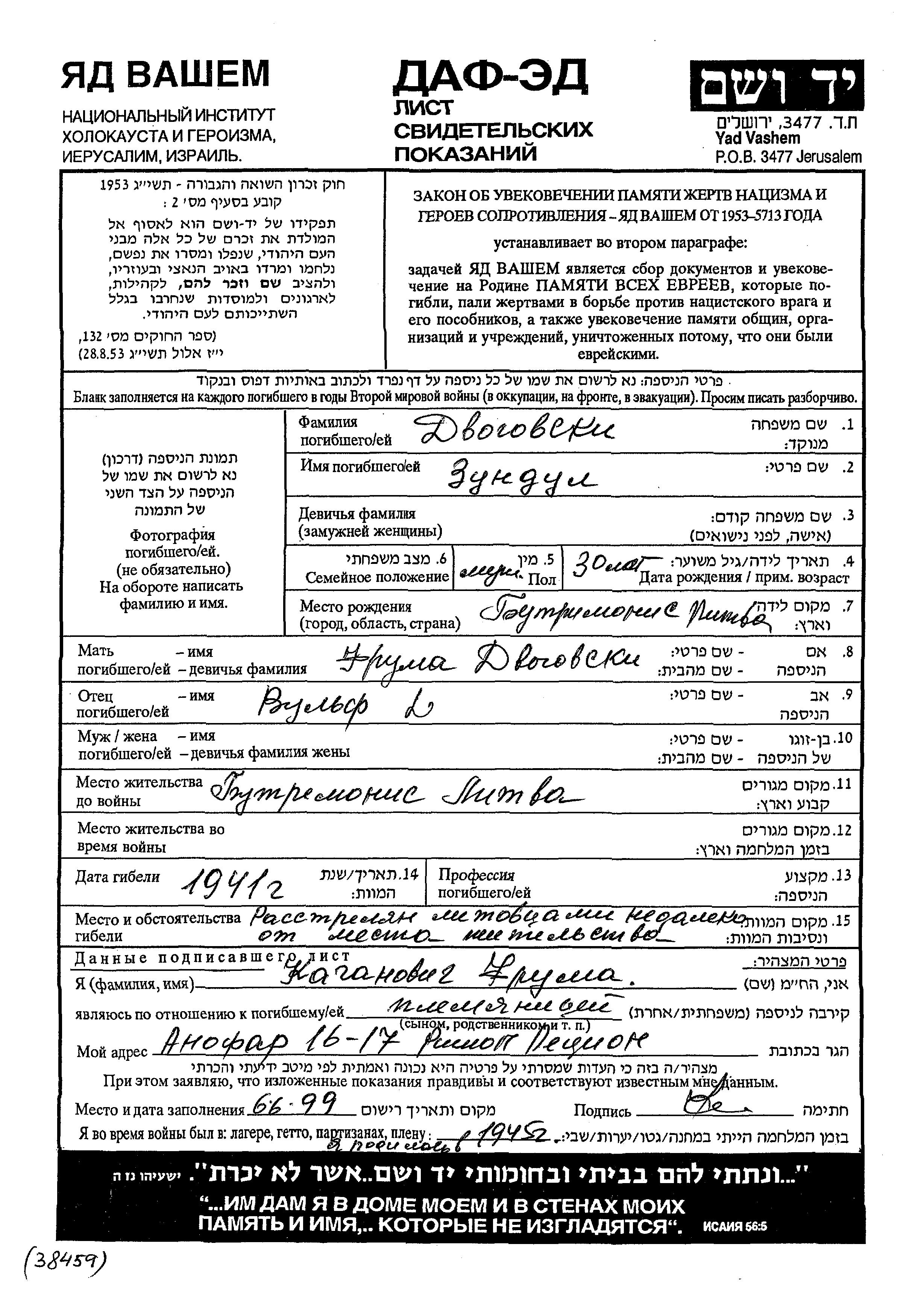 Yad Vashem - Pages of Testimony Names Memorial Collection