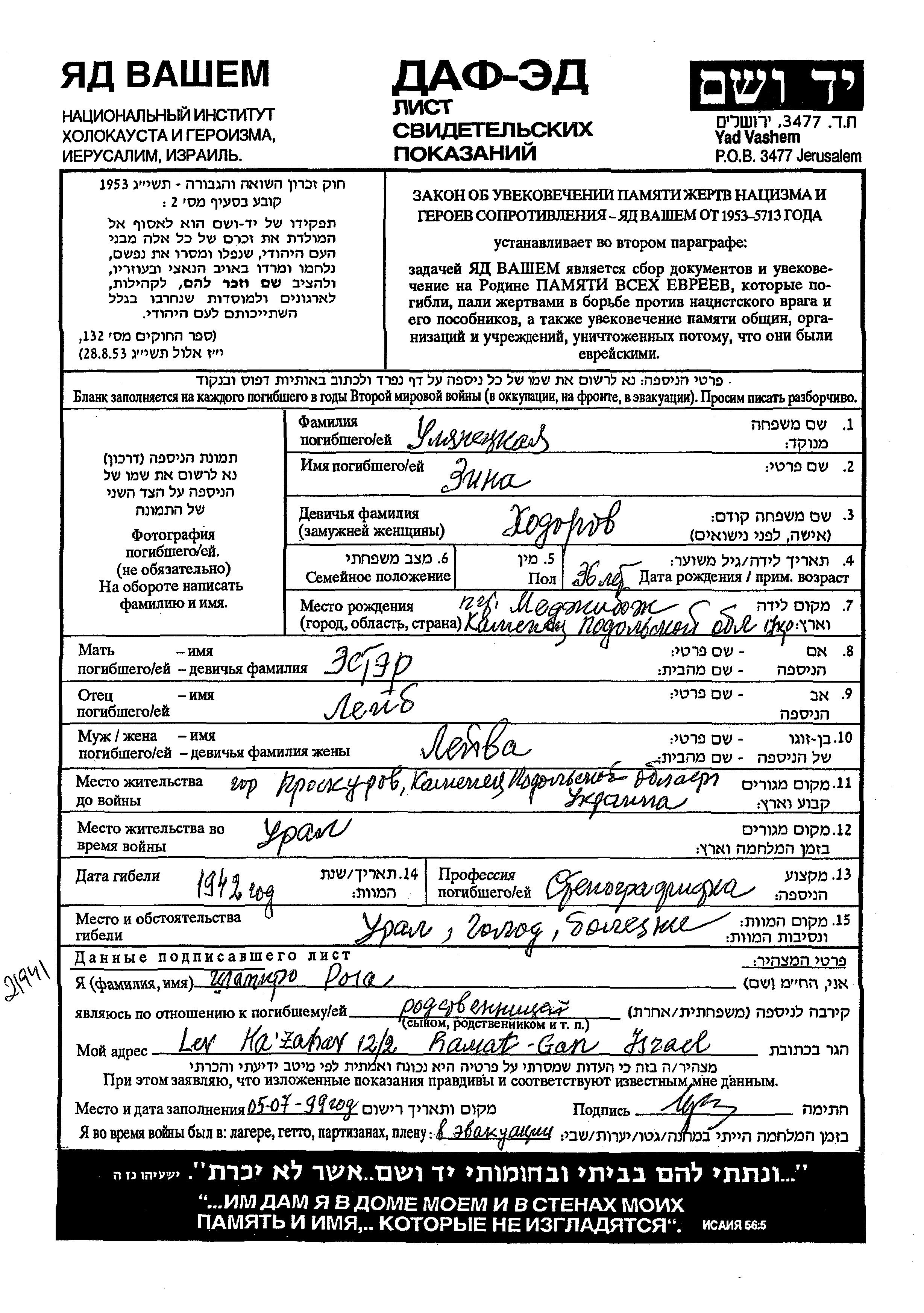 Yad Vashem - Pages of Testimony Names Memorial Collection