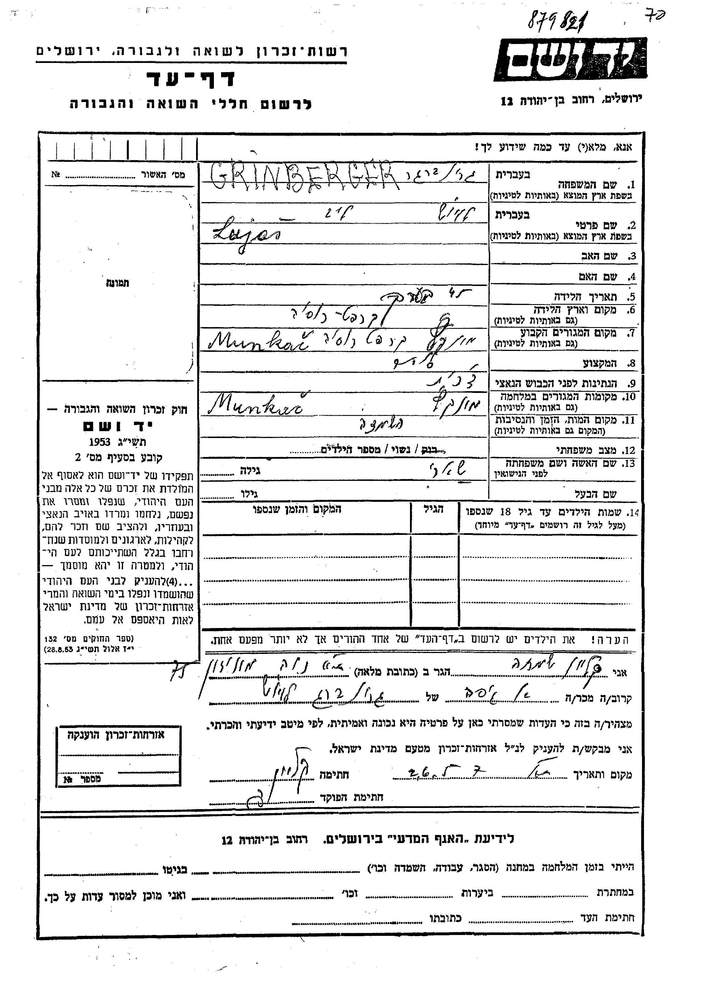 Yad Vashem - Pages of Testimony Names Memorial Collection