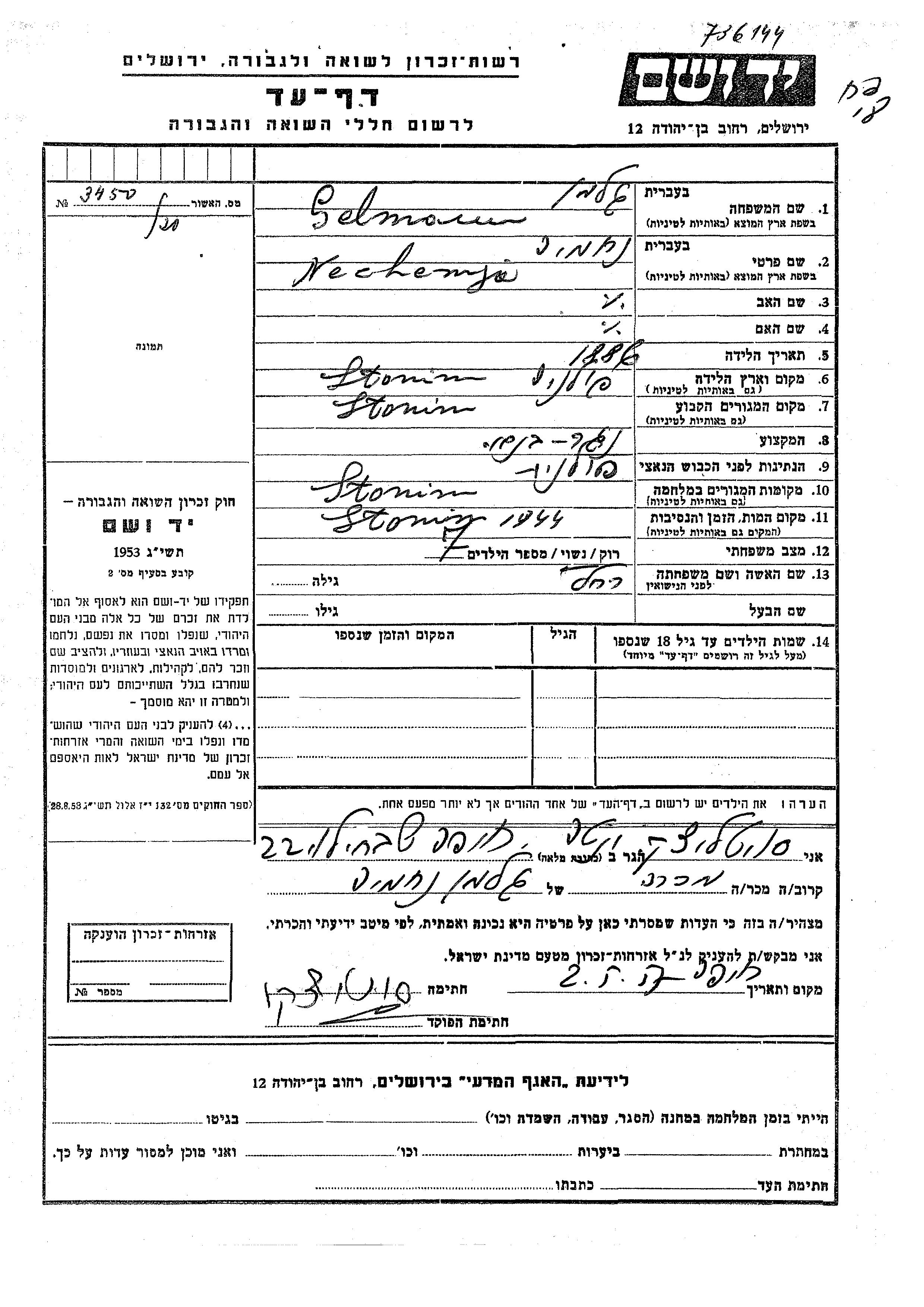 Yad Vashem - Pages of Testimony Names Memorial Collection