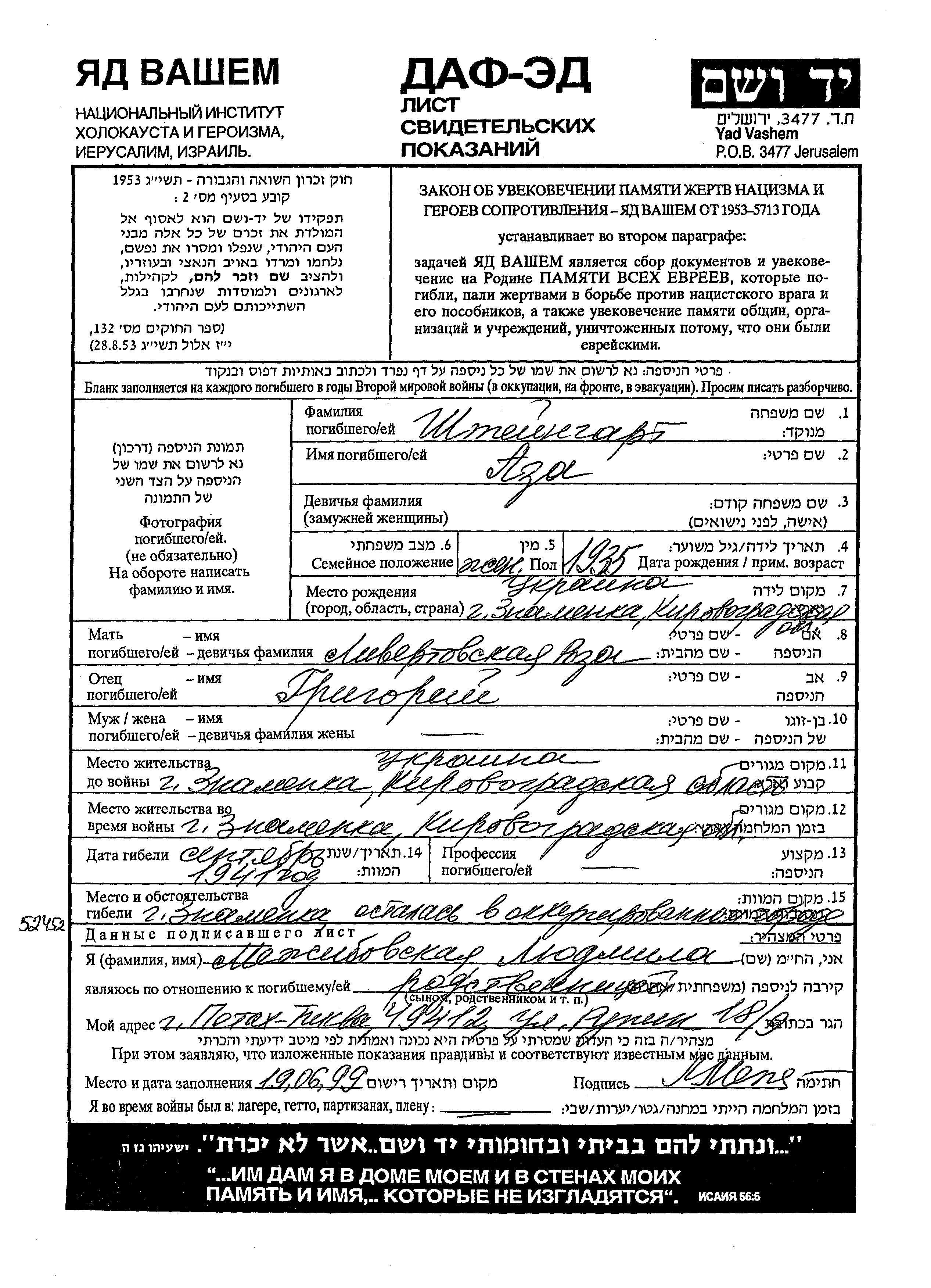 Yad Vashem - Pages of Testimony Names Memorial Collection
