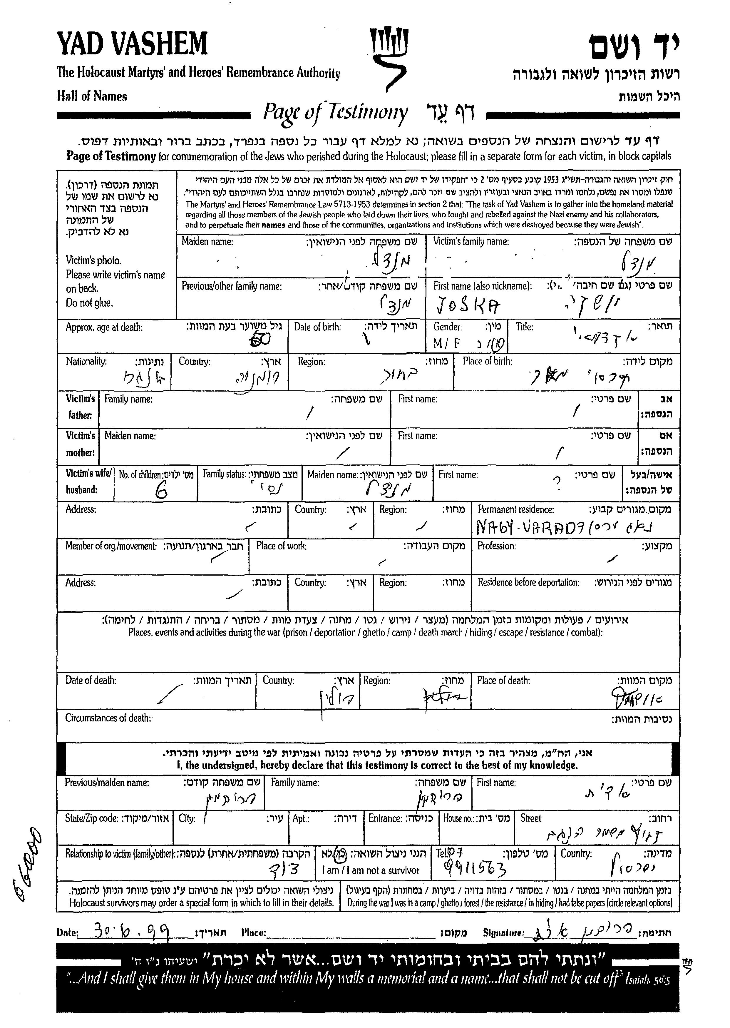 Yad Vashem - Pages of Testimony Names Memorial Collection