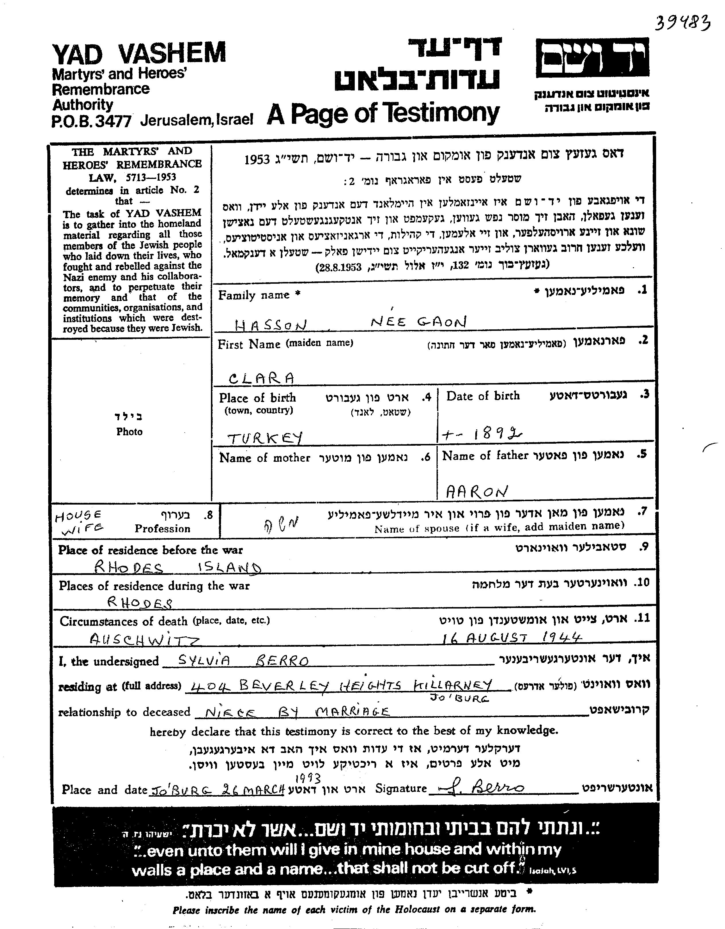 Recherche par date de la mort pendant la période de la Shoah: 1933-1945. Sélectionnez 'Exact'; dans la liste pour rechercher l'année exacte, ou sélectionner '+/- 2 ans'; ou '+/- 5 ans