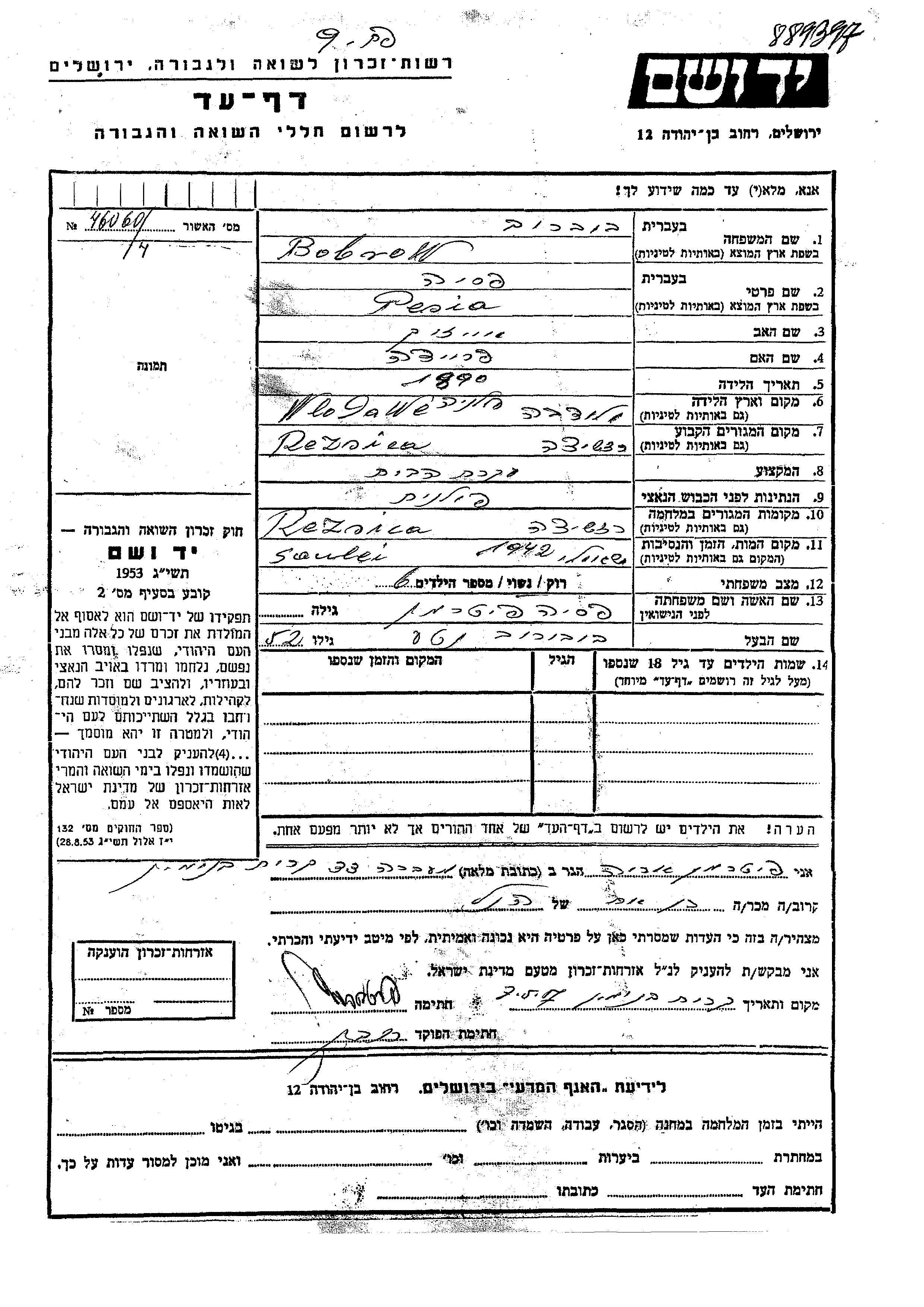 Yad Vashem - Pages of Testimony Names Memorial Collection