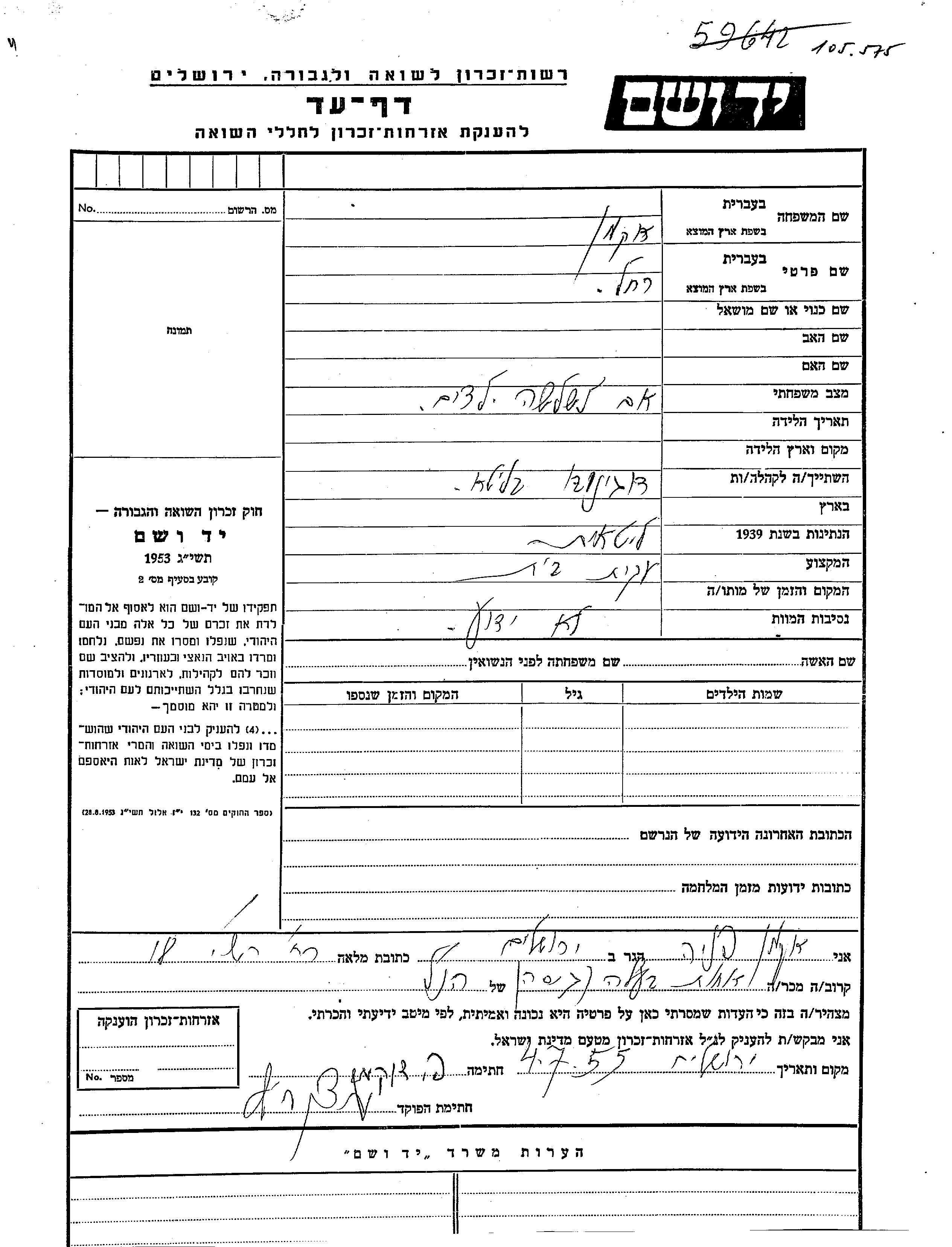 Yad Vashem - Pages of Testimony Names Memorial Collection