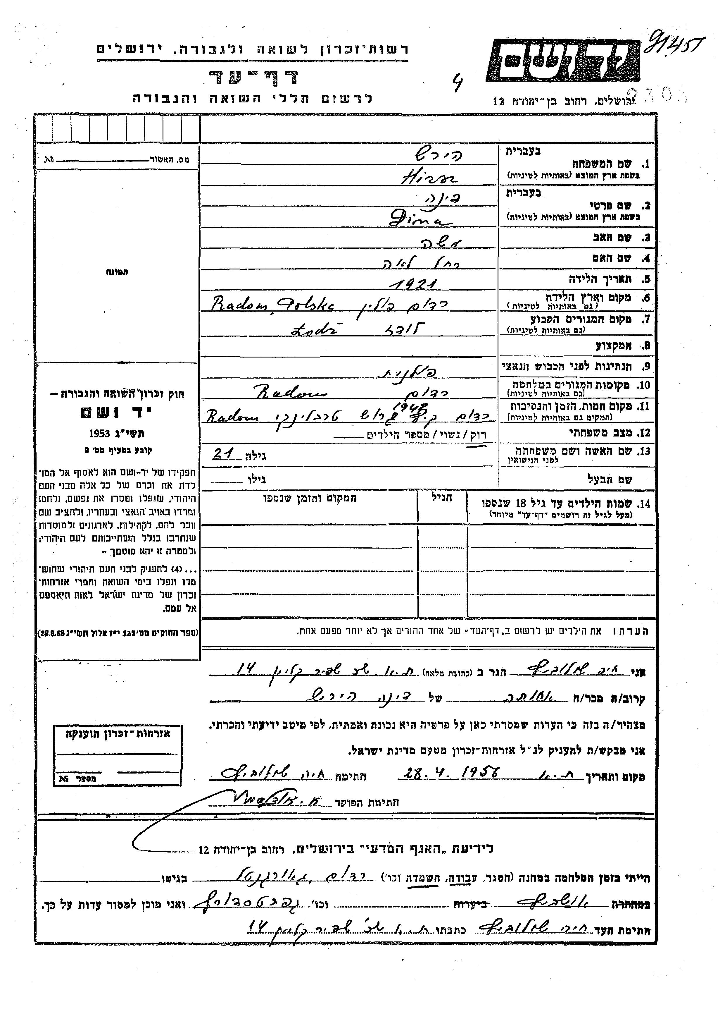 Yad Vashem - Pages of Testimony Names Memorial Collection