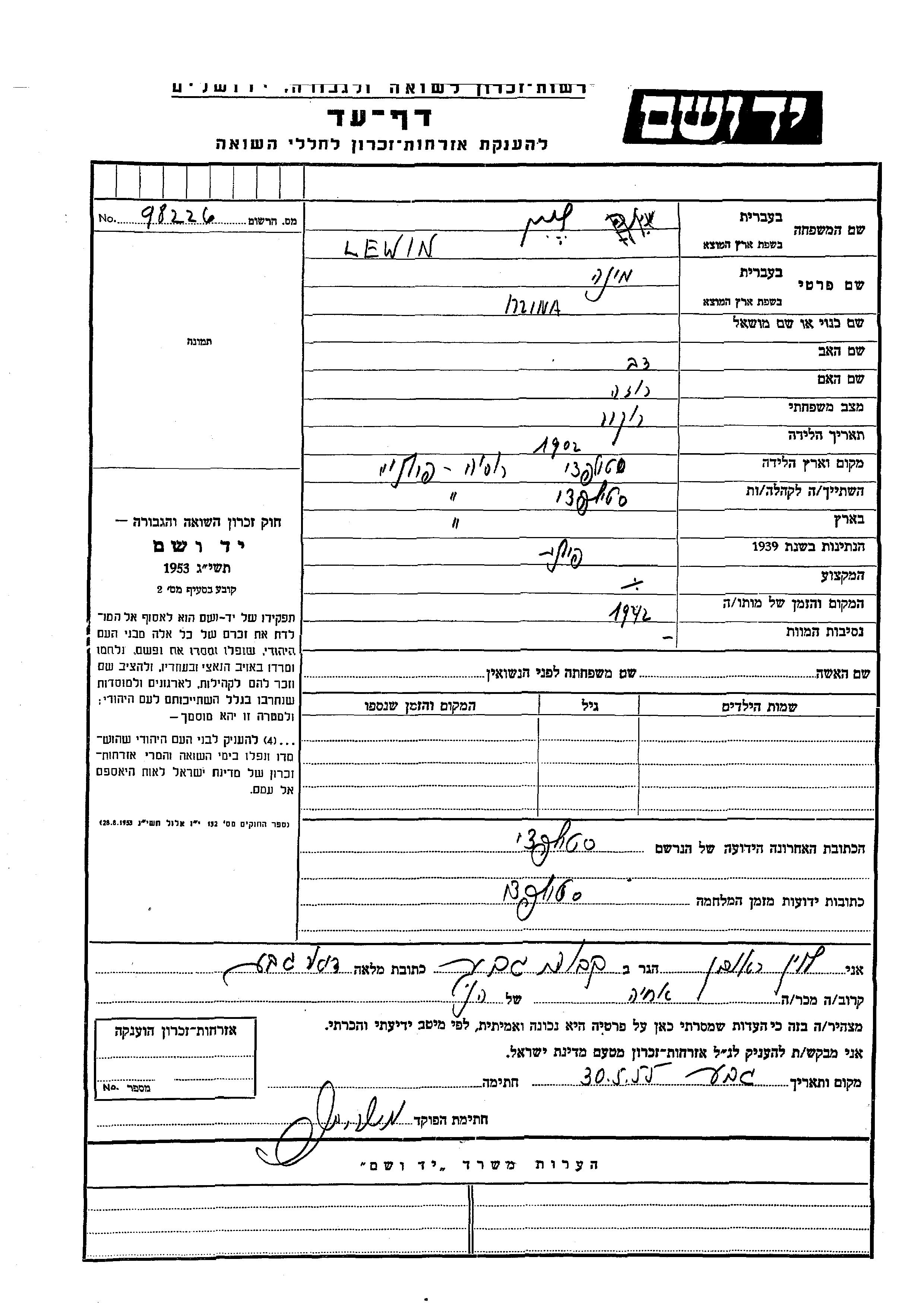 Yad Vashem - Pages of Testimony Names Memorial Collection