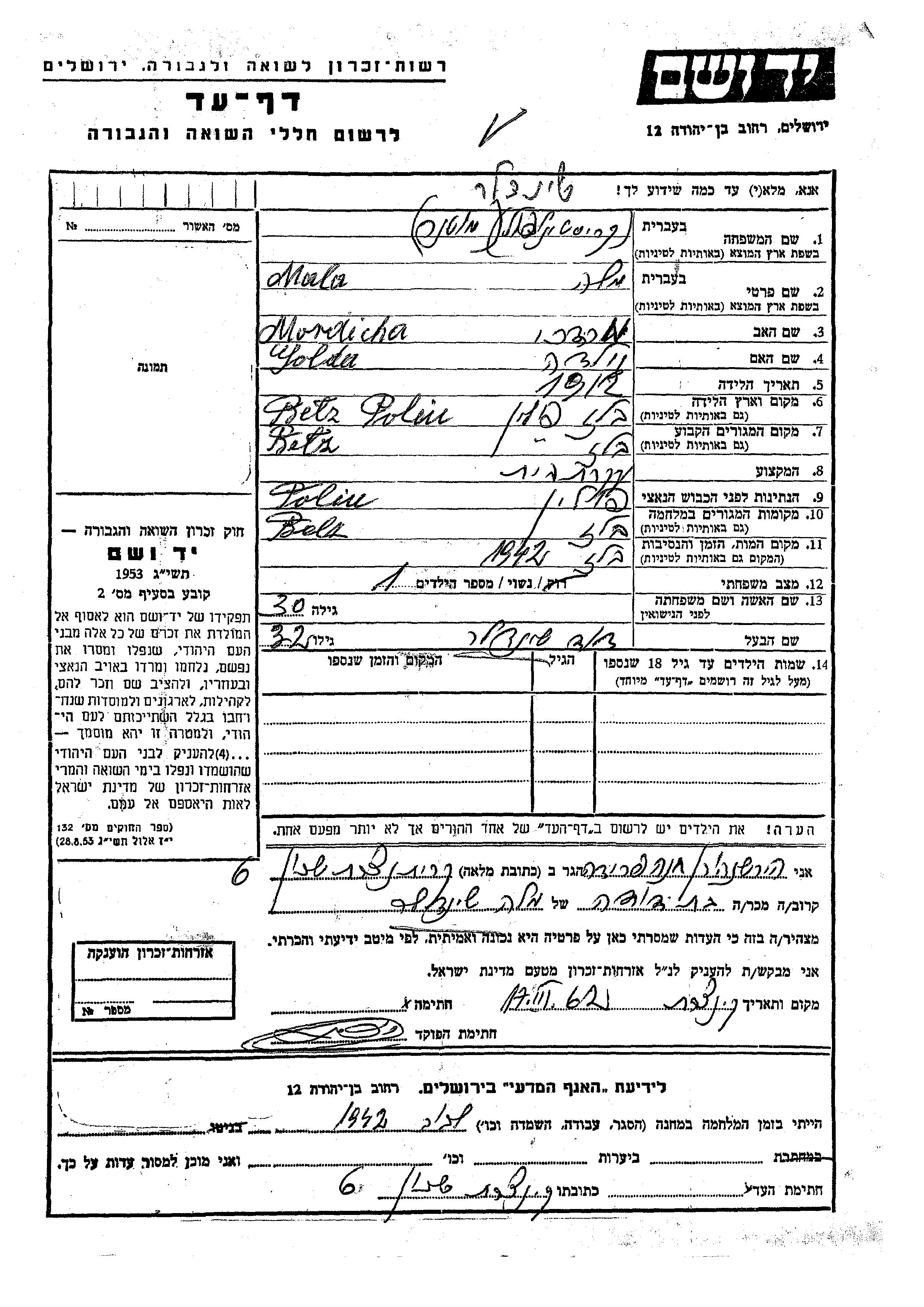 Yad Vashem - Pages of Testimony Names Memorial Collection