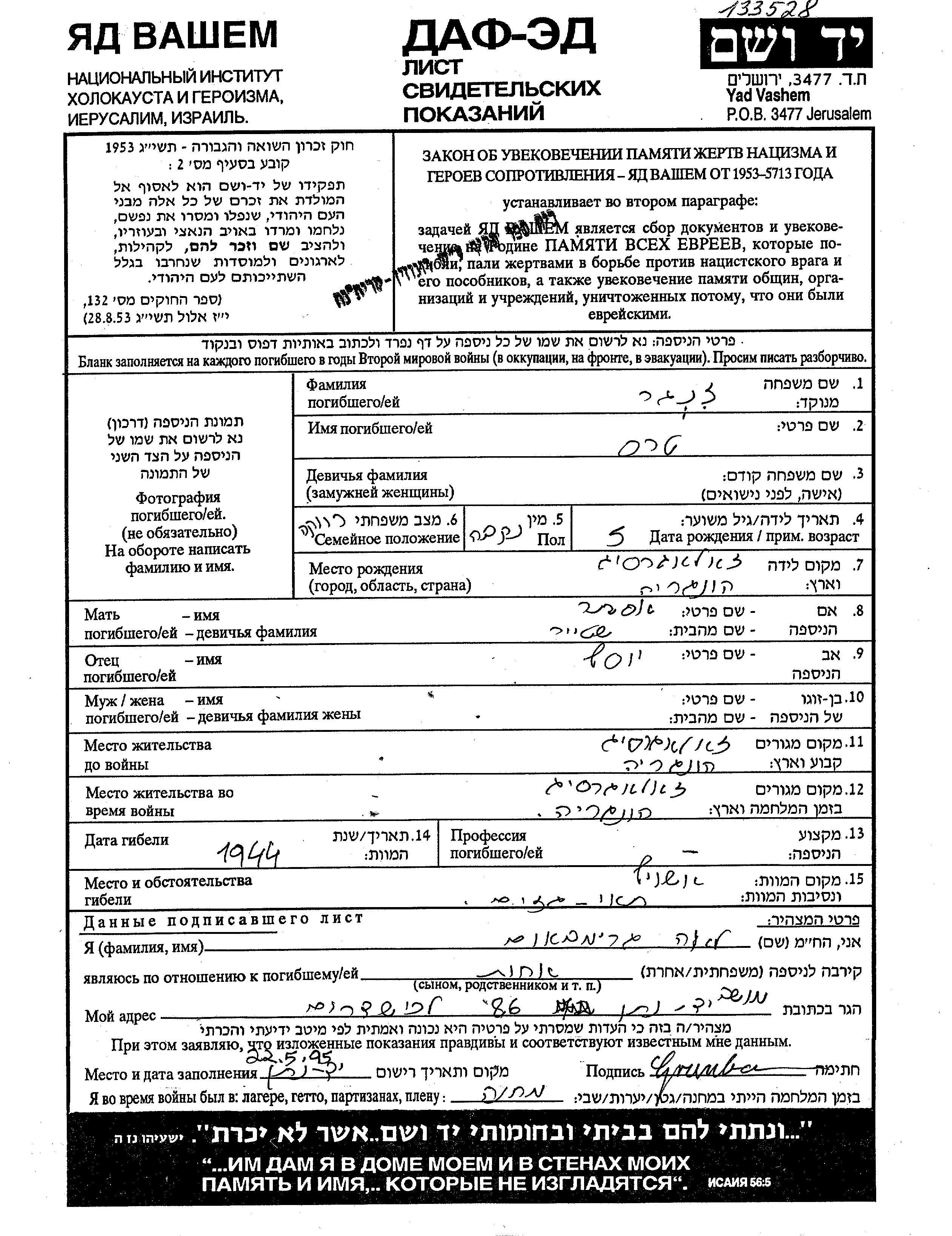 Yad Vashem - Pages of Testimony Names Memorial Collection