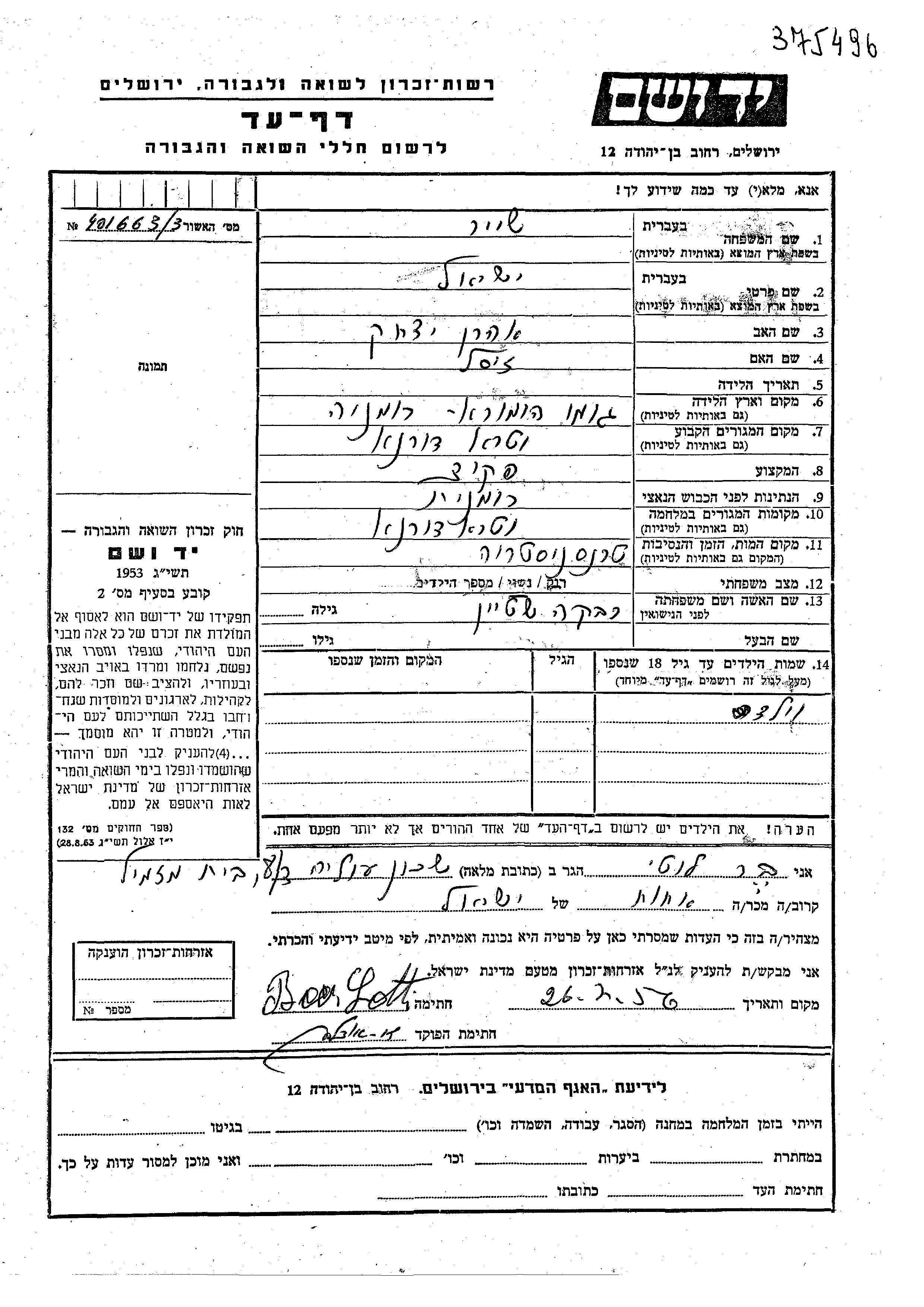 Yad Vashem - Pages of Testimony Names Memorial Collection