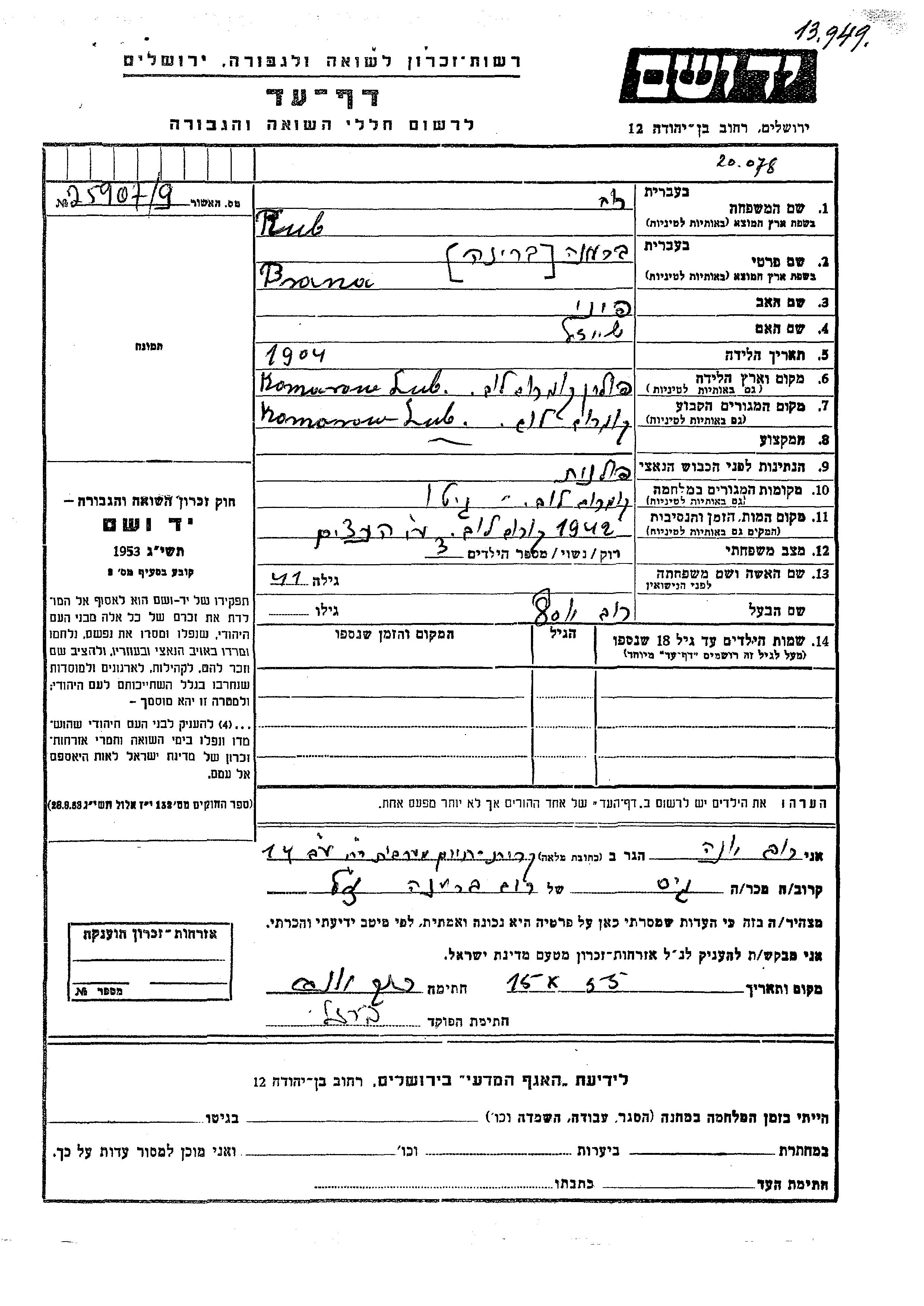 Yad Vashem - Pages of Testimony Names Memorial Collection