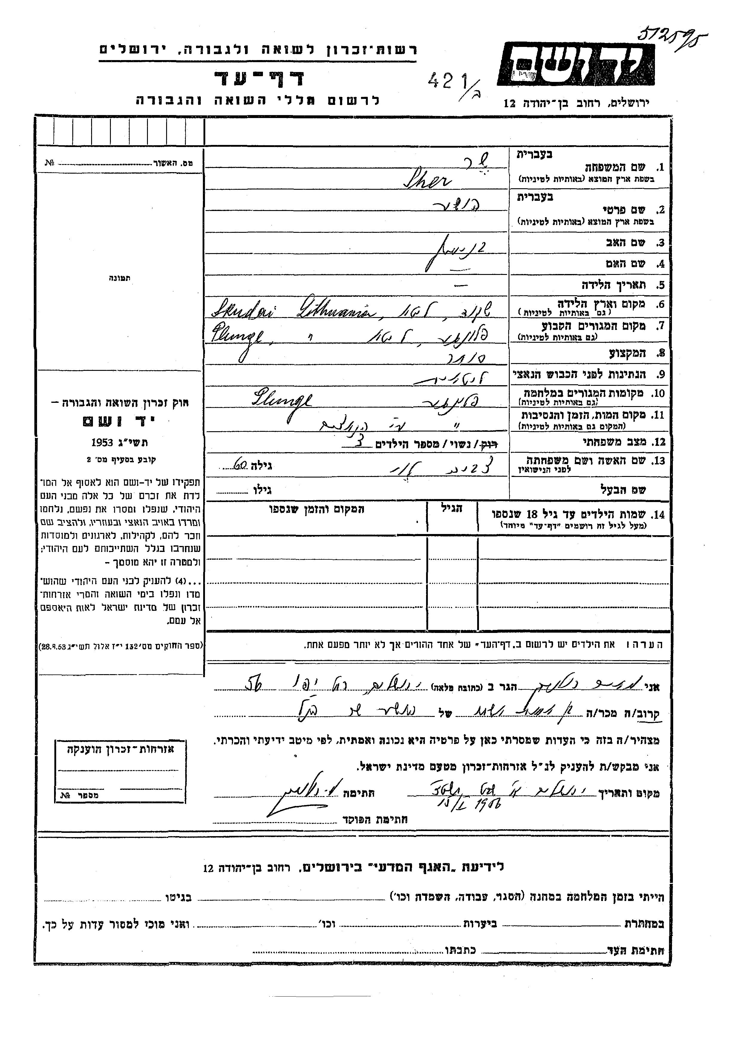 Yad Vashem - Pages of Testimony Names Memorial Collection