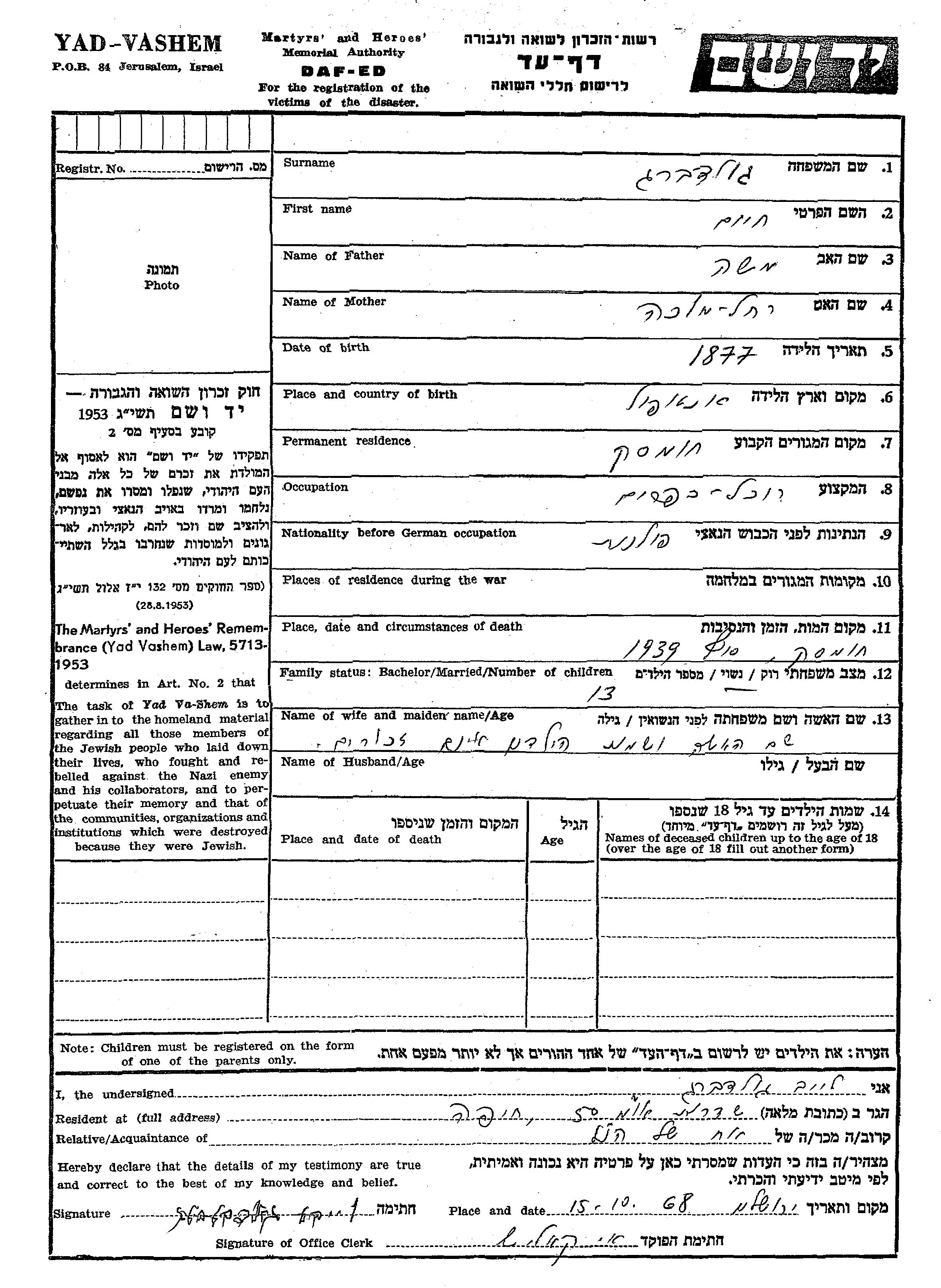 Yad Vashem - Pages of Testimony Names Memorial Collection