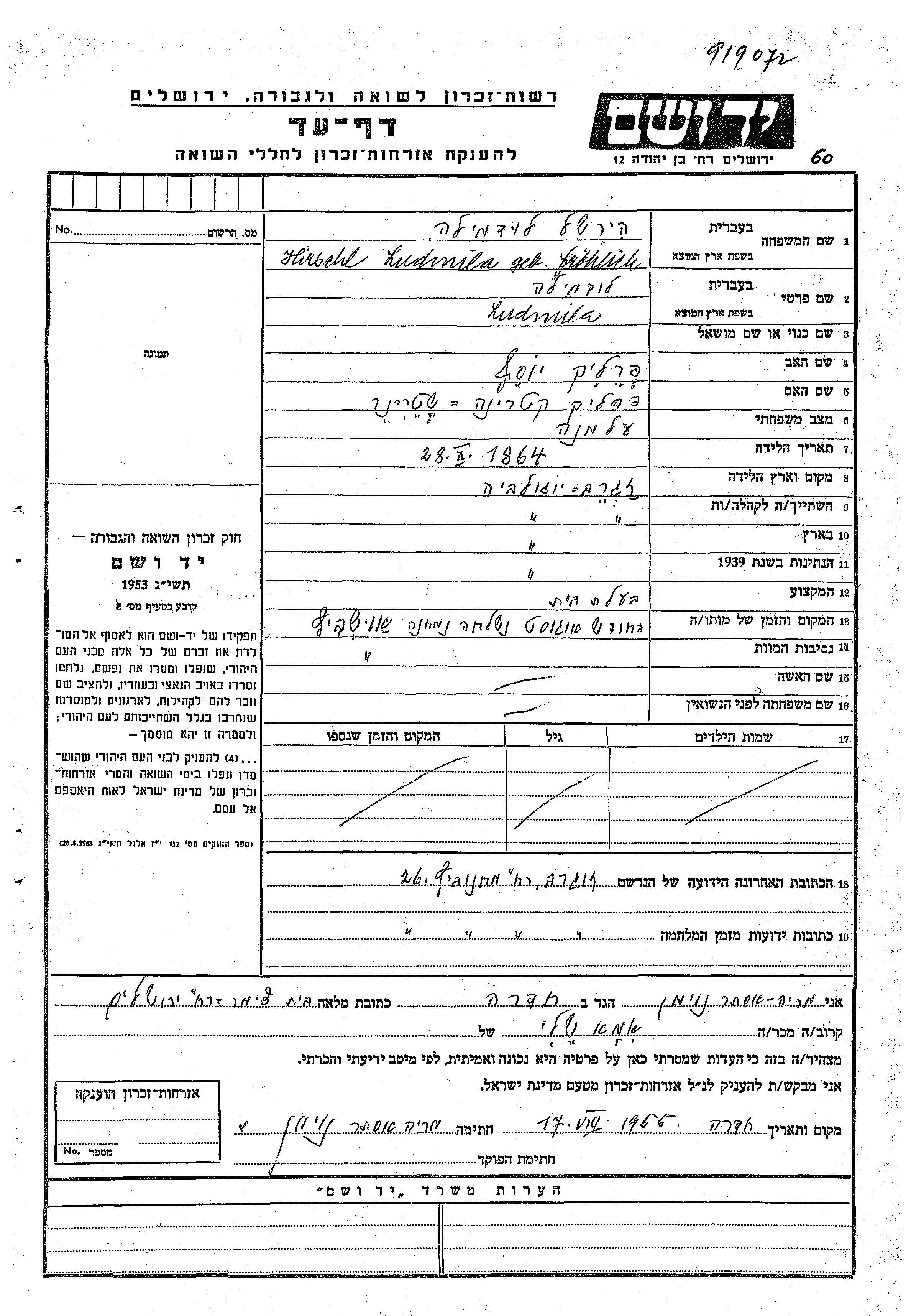 Yad Vashem - Pages of Testimony Names Memorial Collection