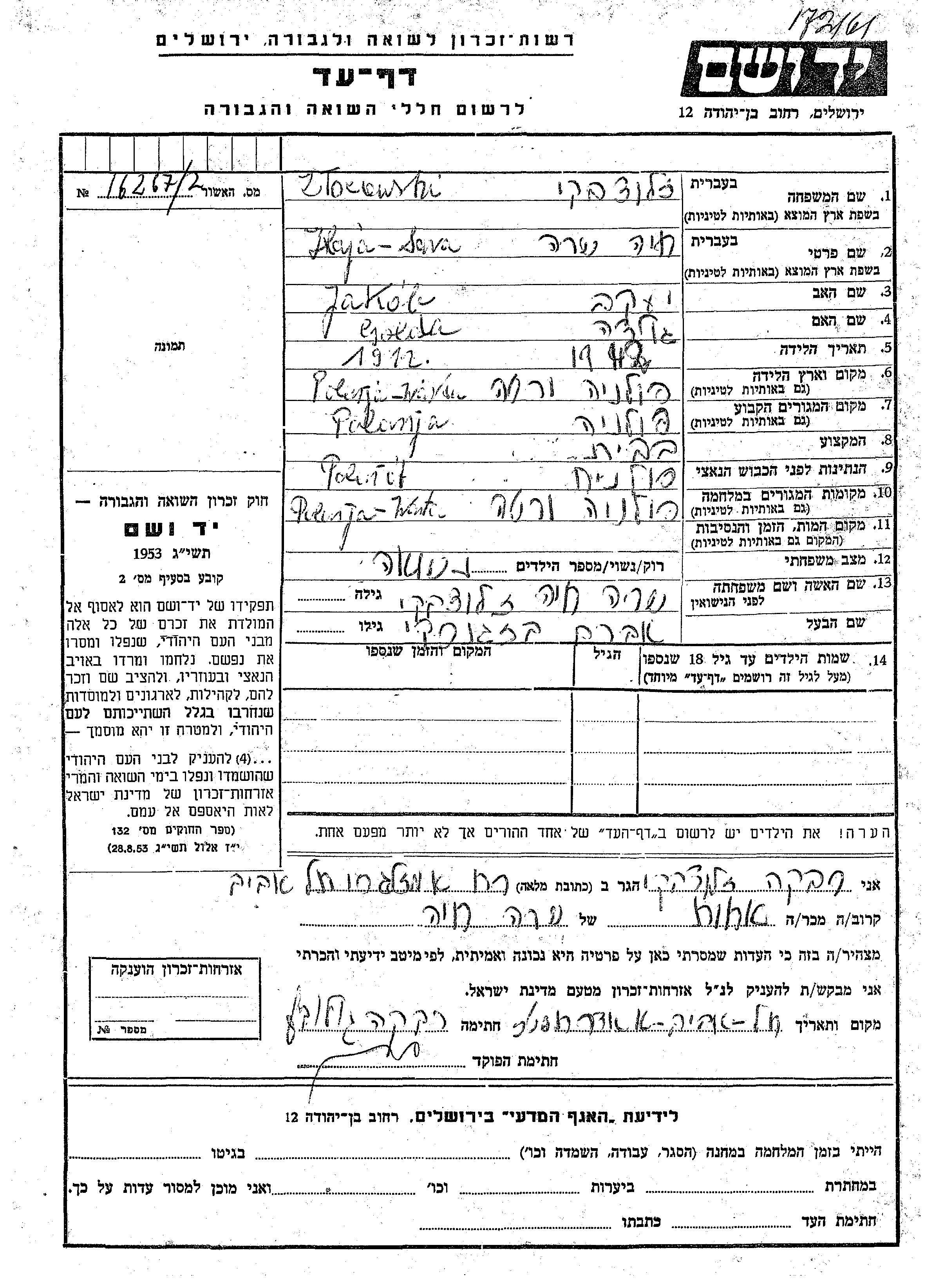 Yad Vashem - Pages of Testimony Names Memorial Collection