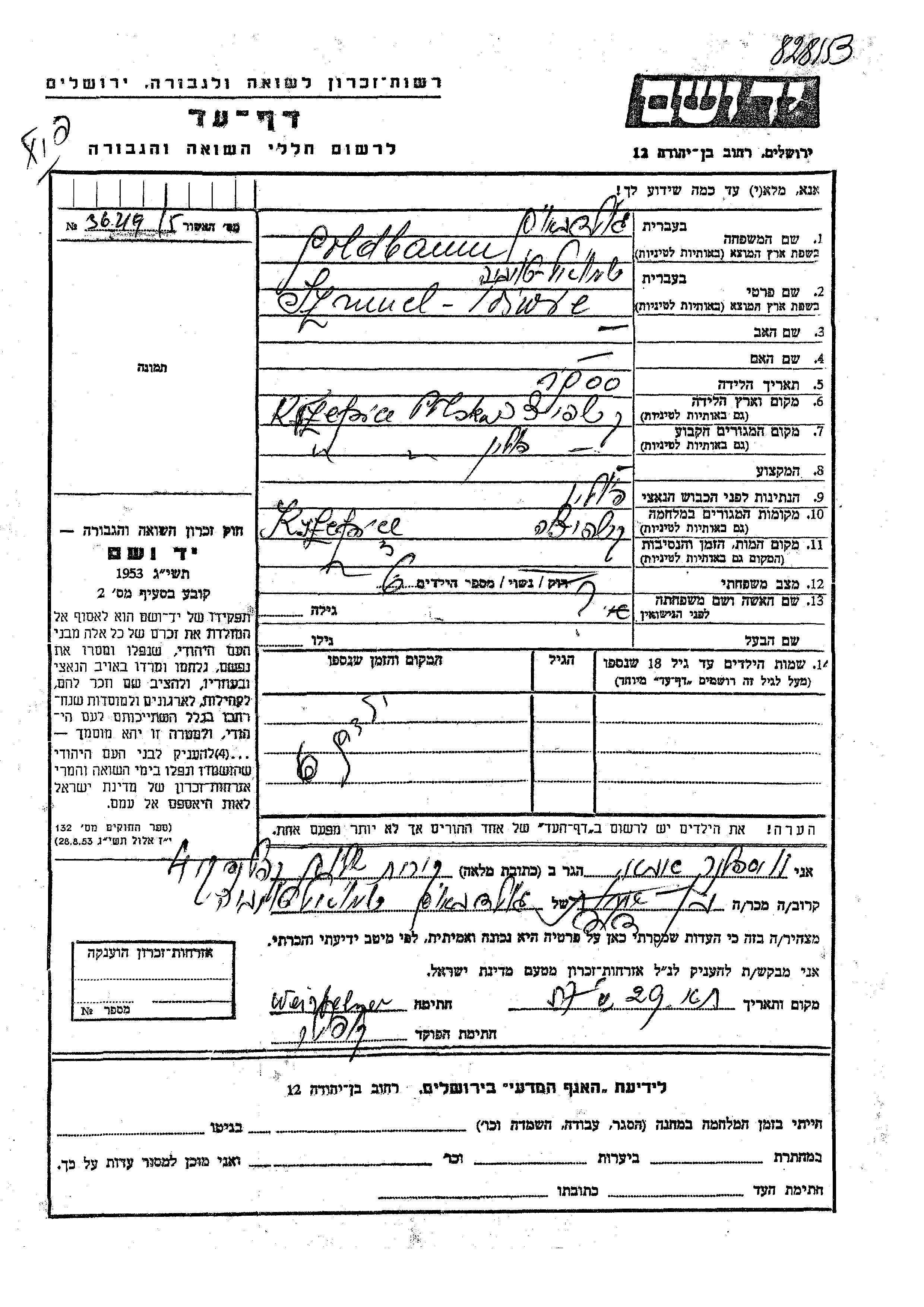 Yad Vashem - Pages of Testimony Names Memorial Collection