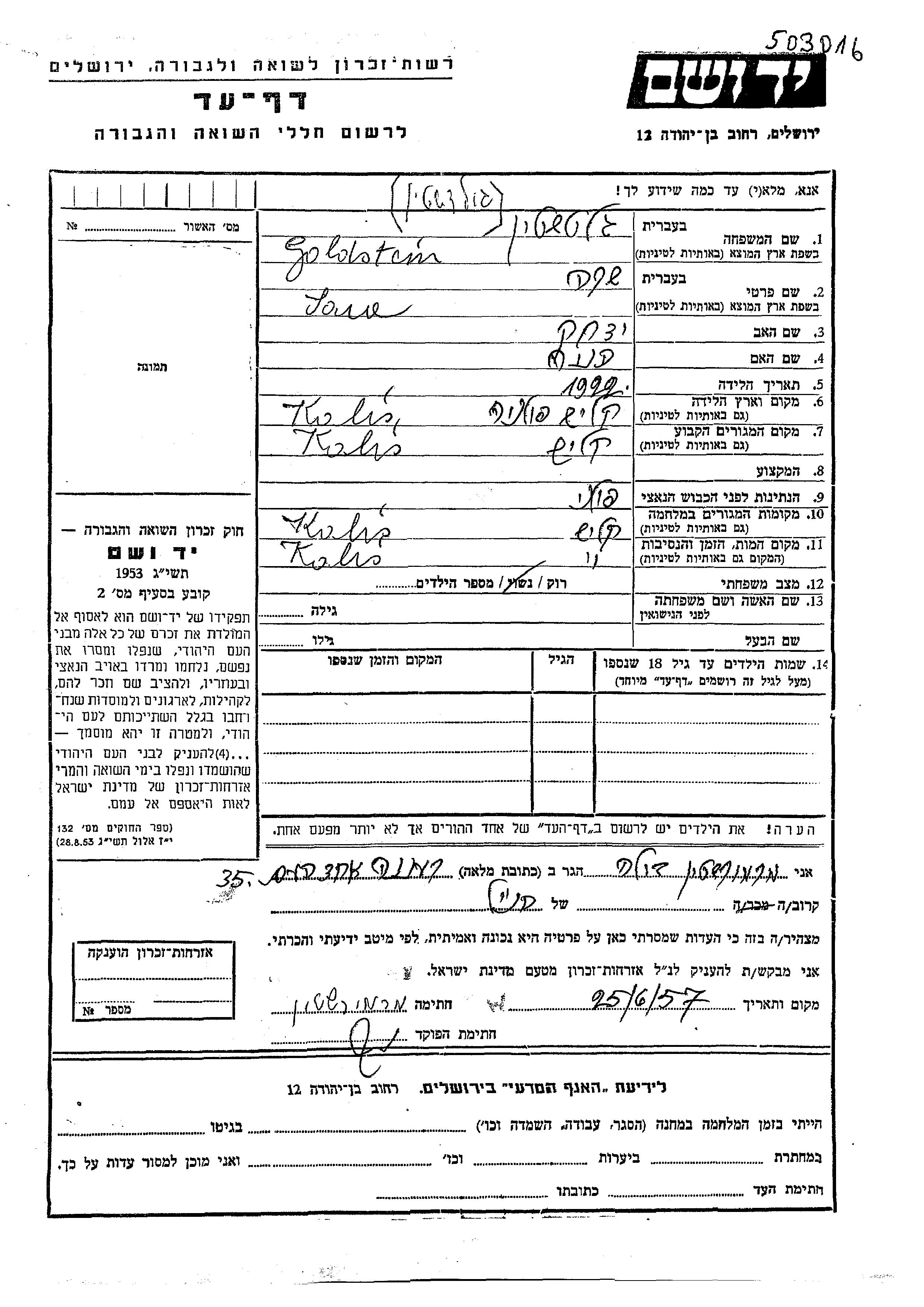 Yad Vashem - Pages of Testimony Names Memorial Collection