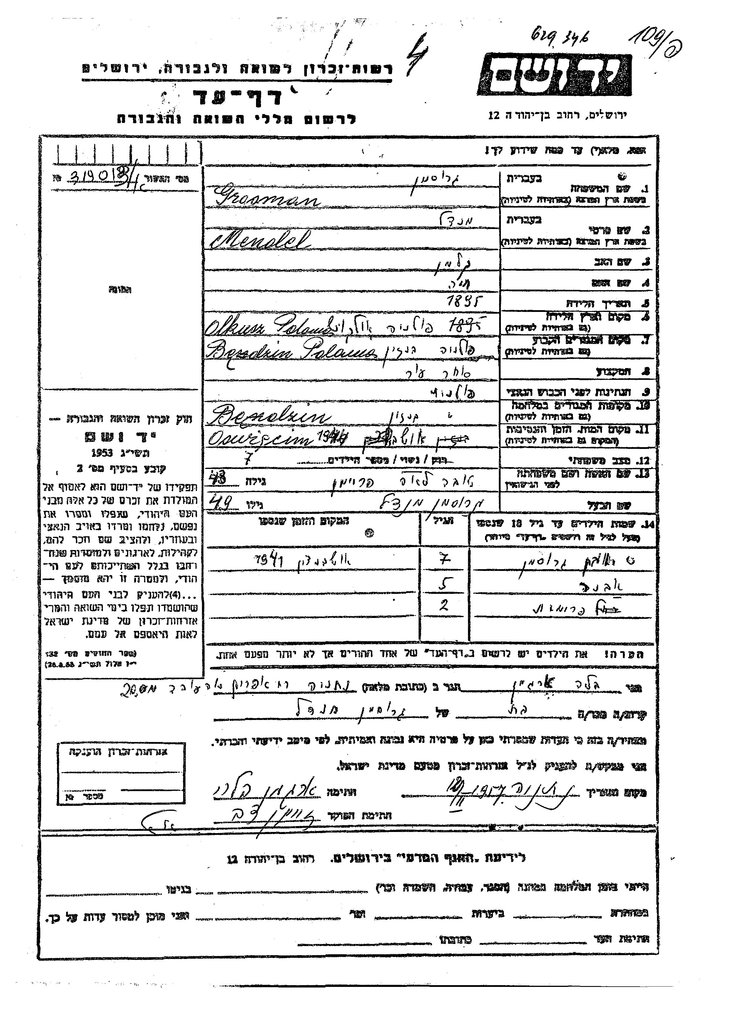 Yad Vashem - Pages of Testimony Names Memorial Collection