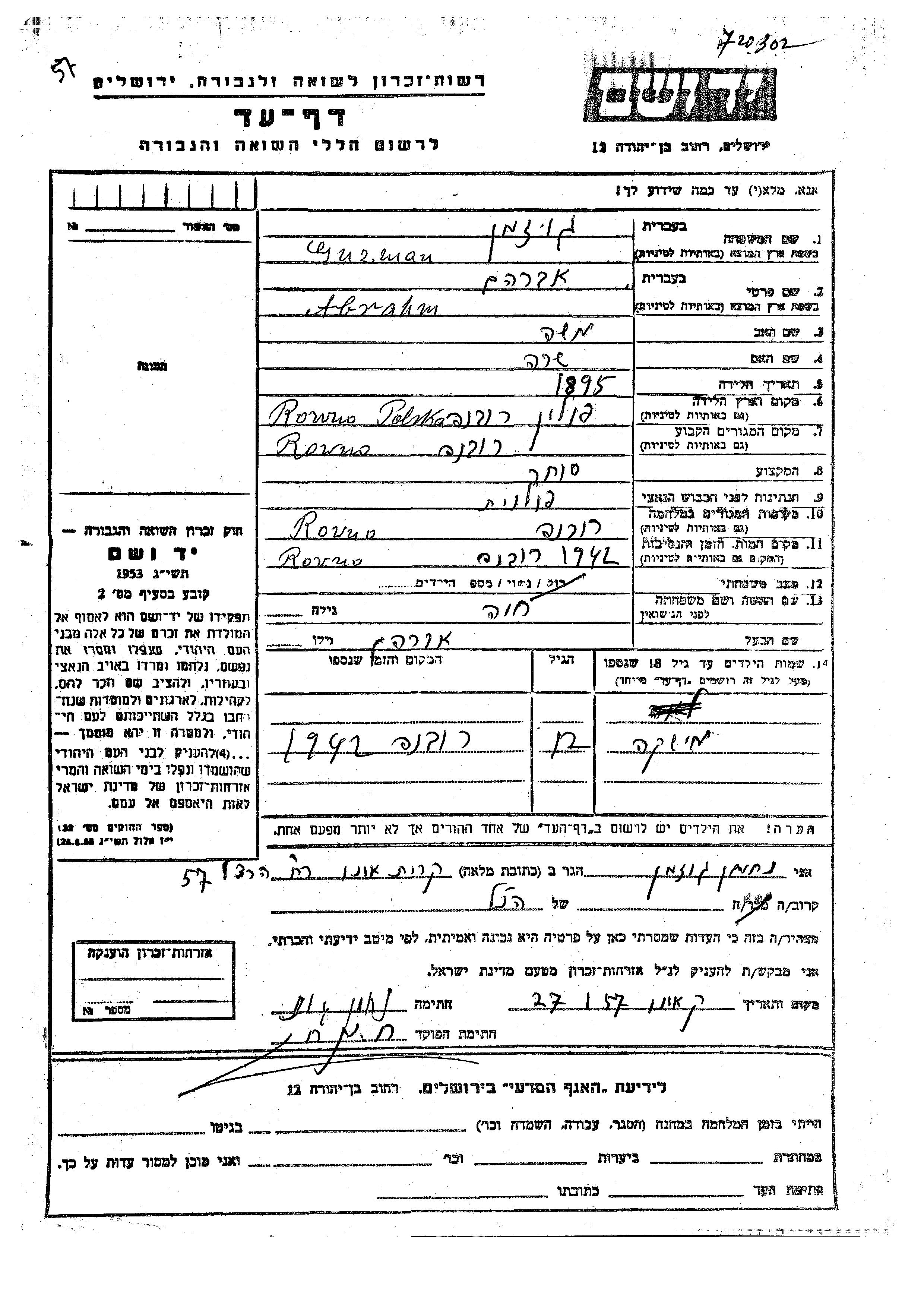 Yad Vashem - Pages of Testimony Names Memorial Collection