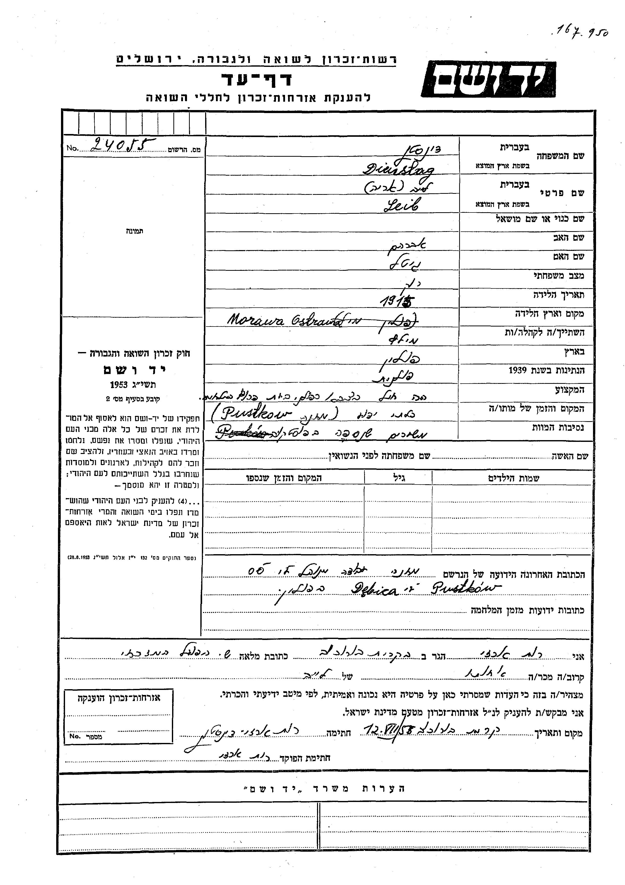 Yad Vashem - Pages of Testimony Names Memorial Collection