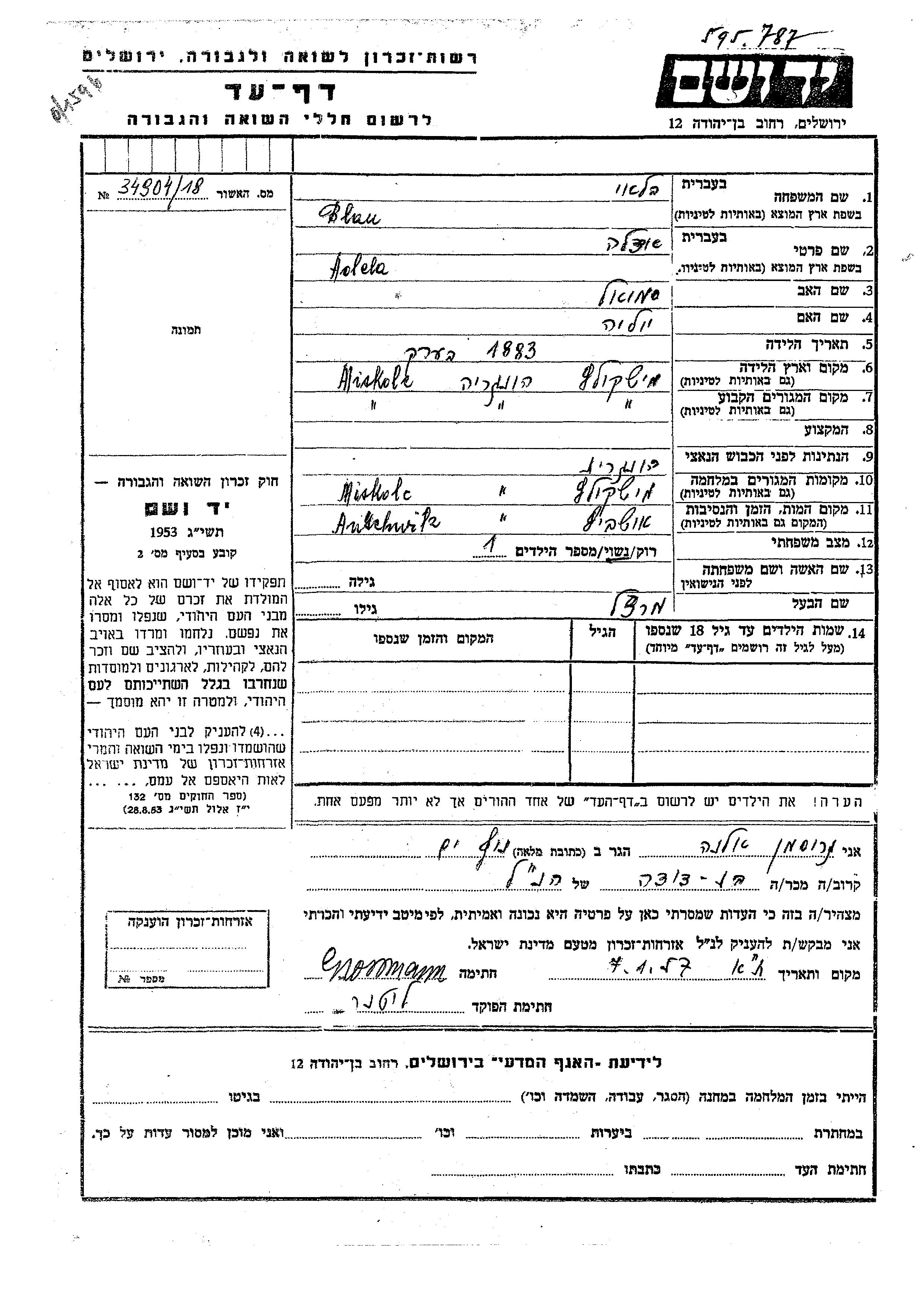 Yad Vashem - Pages of Testimony Names Memorial Collection