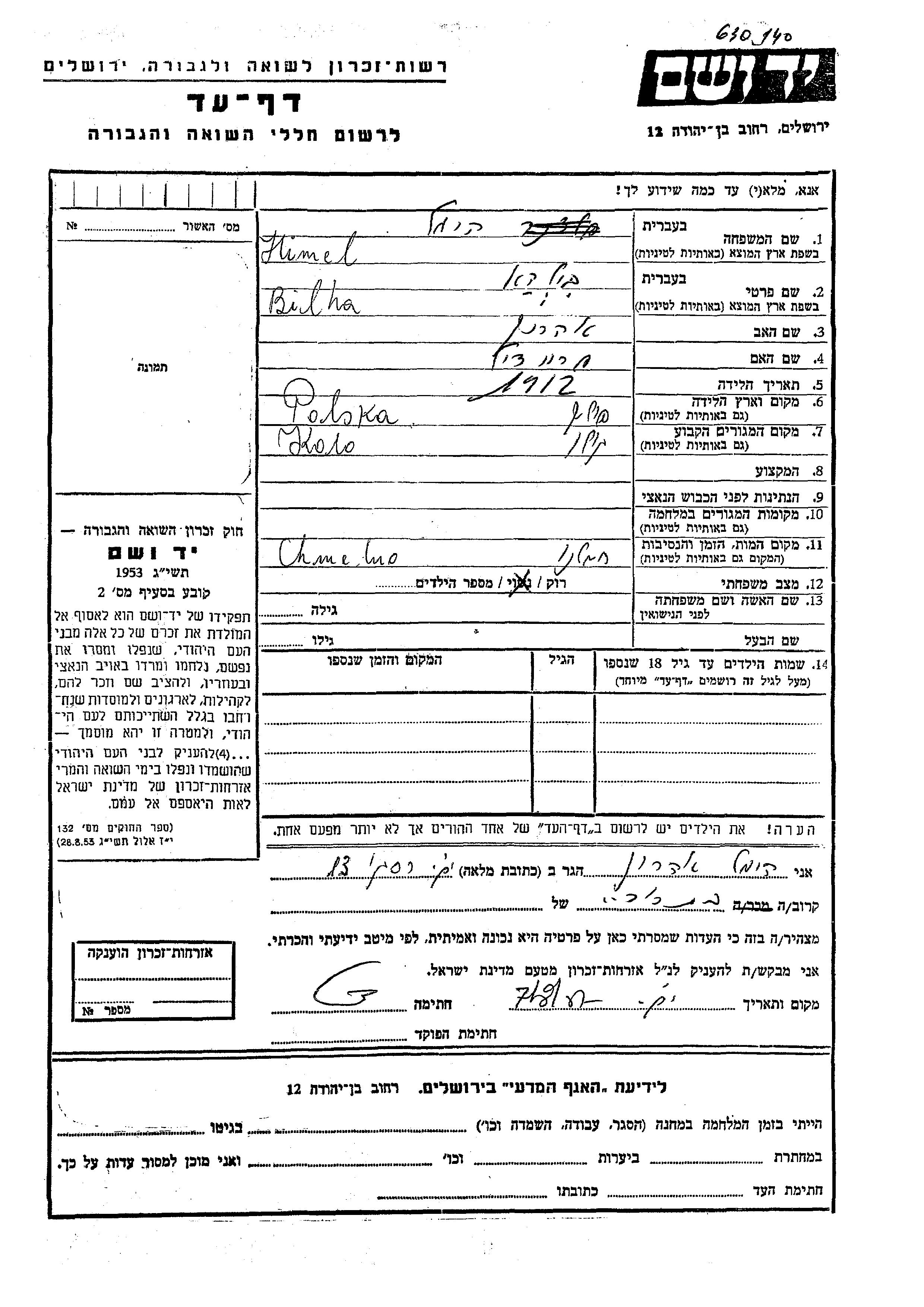 Yad Vashem - Pages of Testimony Names Memorial Collection