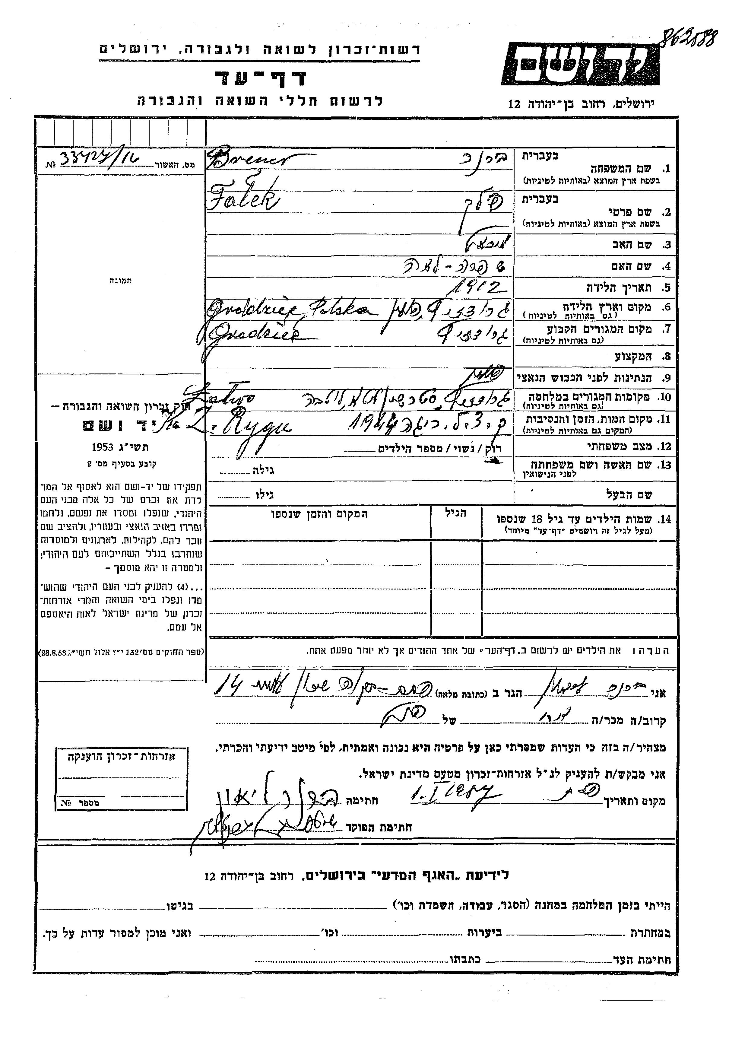 Yad Vashem - Pages of Testimony Names Memorial Collection
