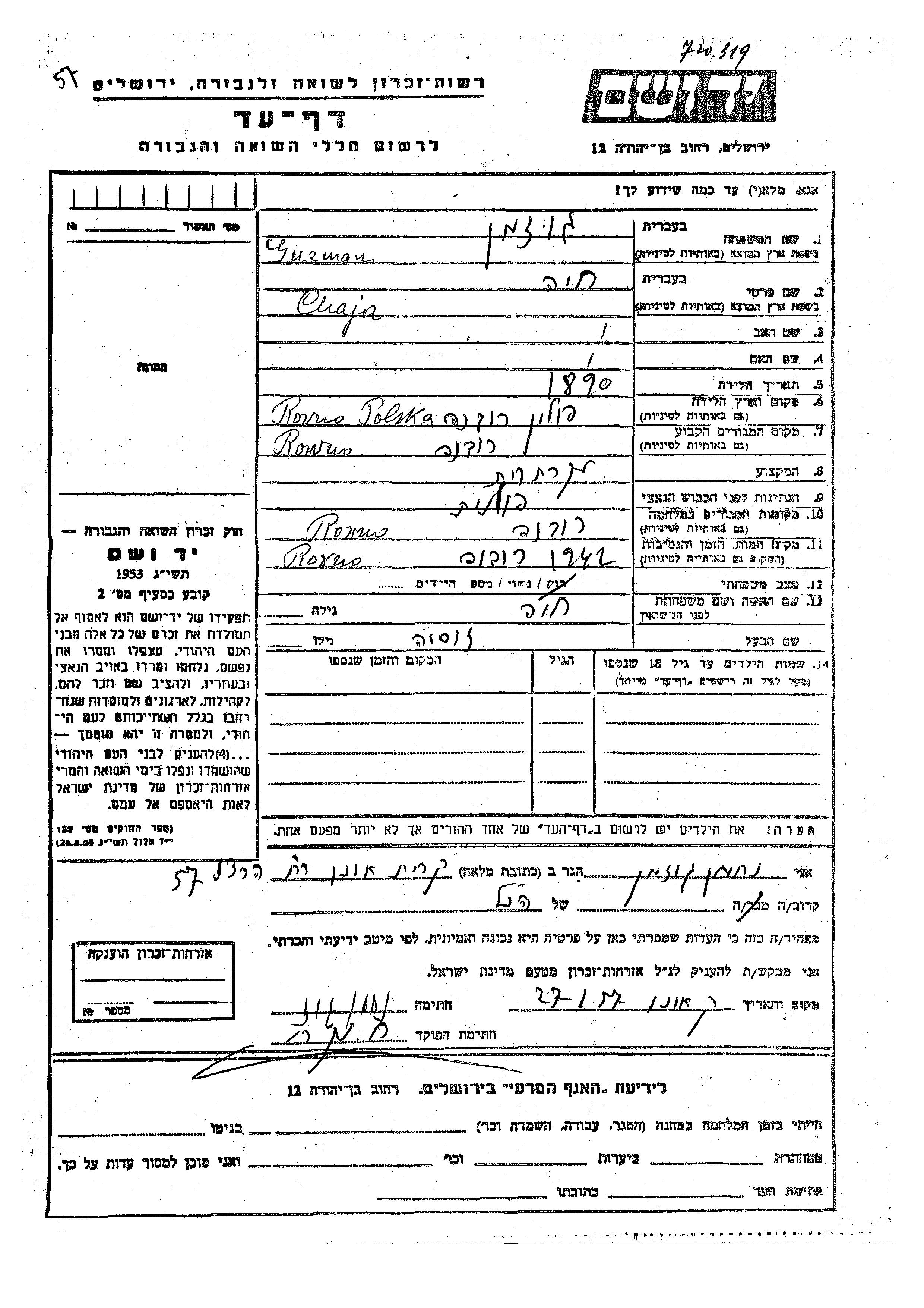 Yad Vashem - Pages of Testimony Names Memorial Collection