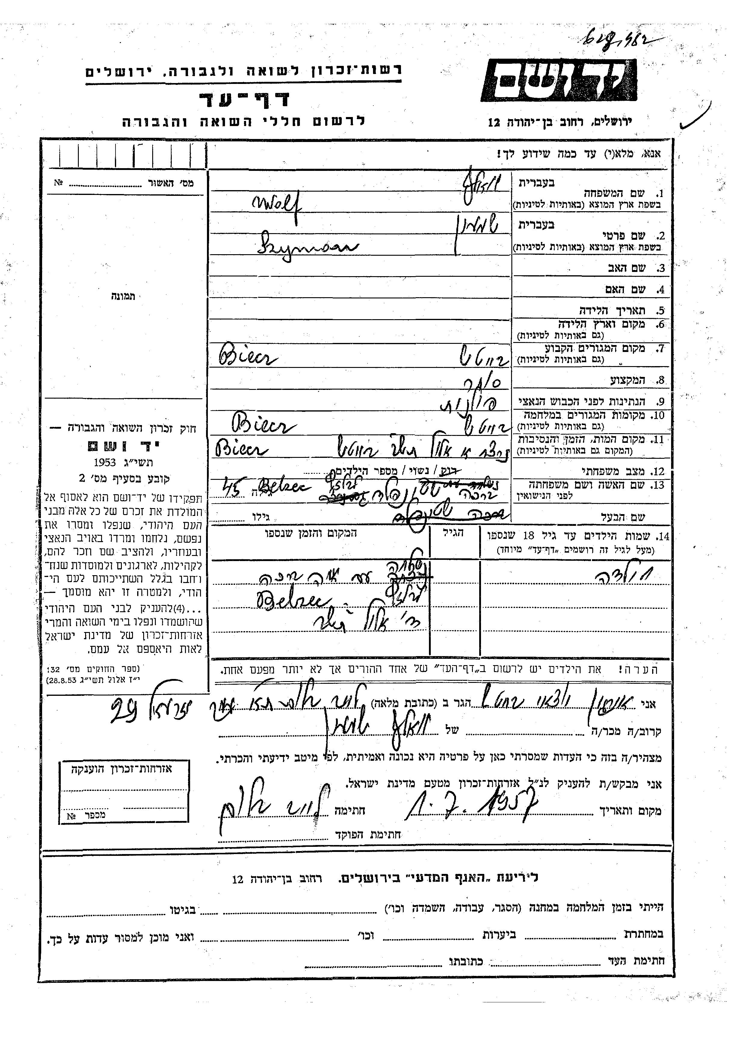 Yad Vashem - Pages of Testimony Names Memorial Collection