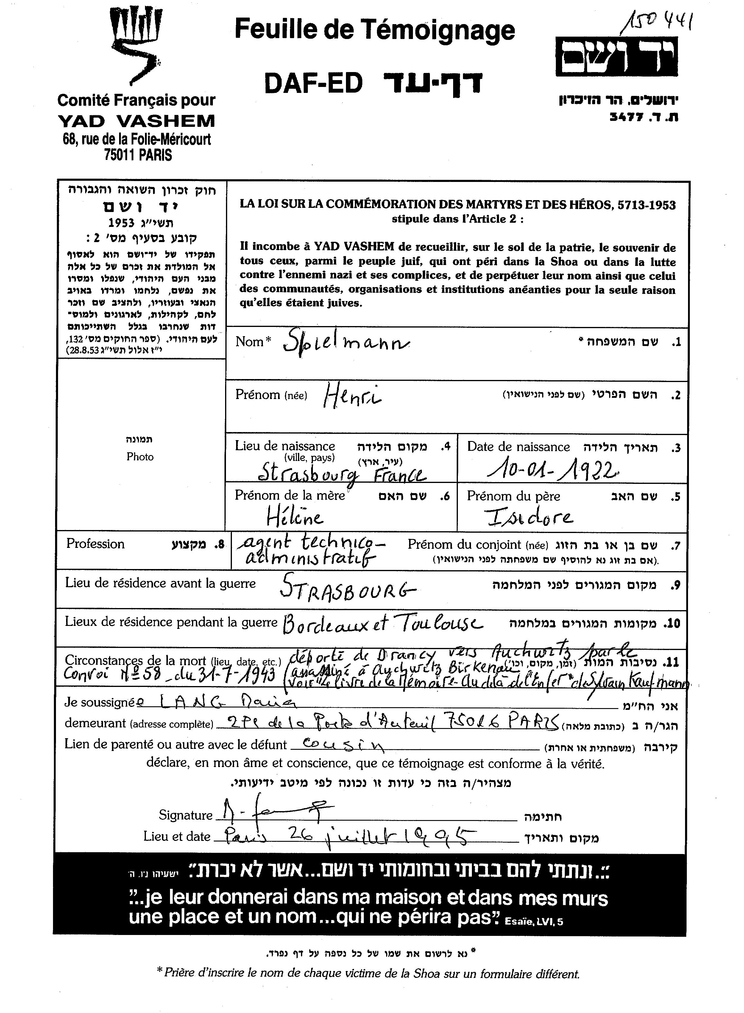 Recherche par nom du dépositeur de la Feuille de témoignage. Cette recherché indique aussi les noms de jeunes filles.