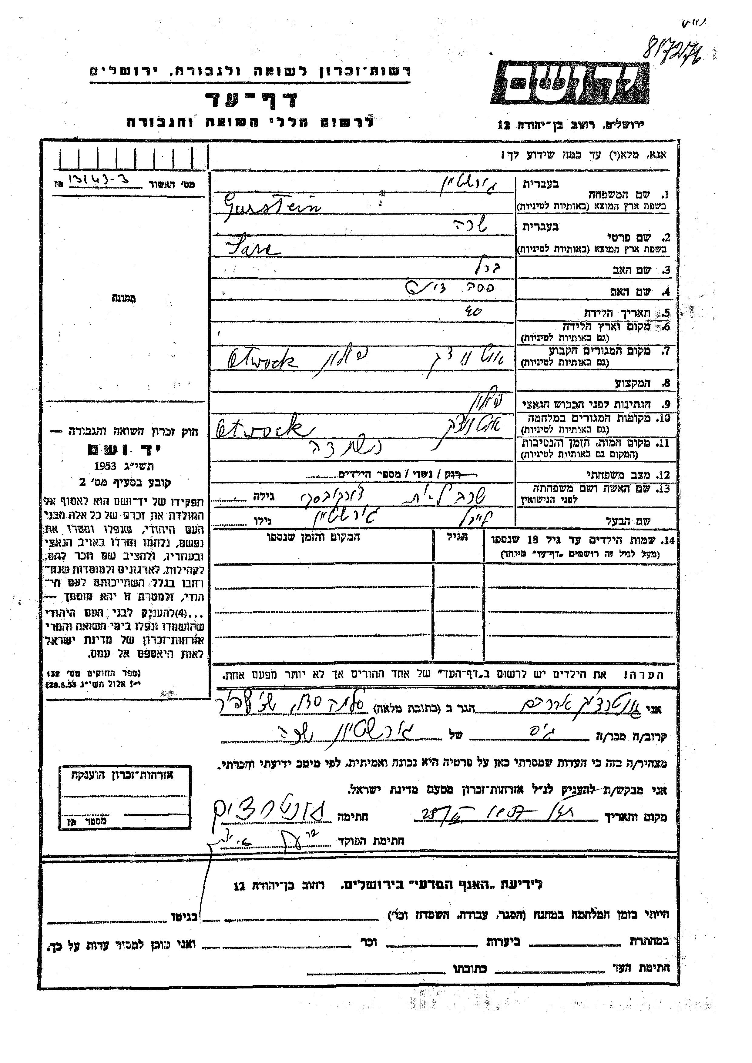 Yad Vashem - Pages of Testimony Names Memorial Collection