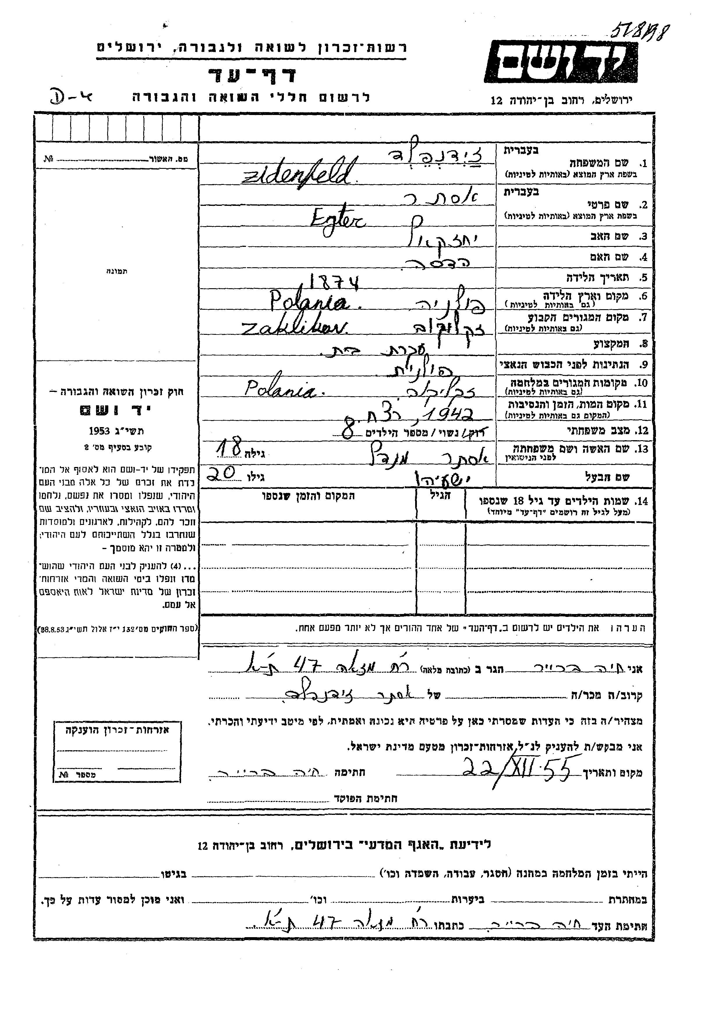 Yad Vashem - Pages of Testimony Names Memorial Collection