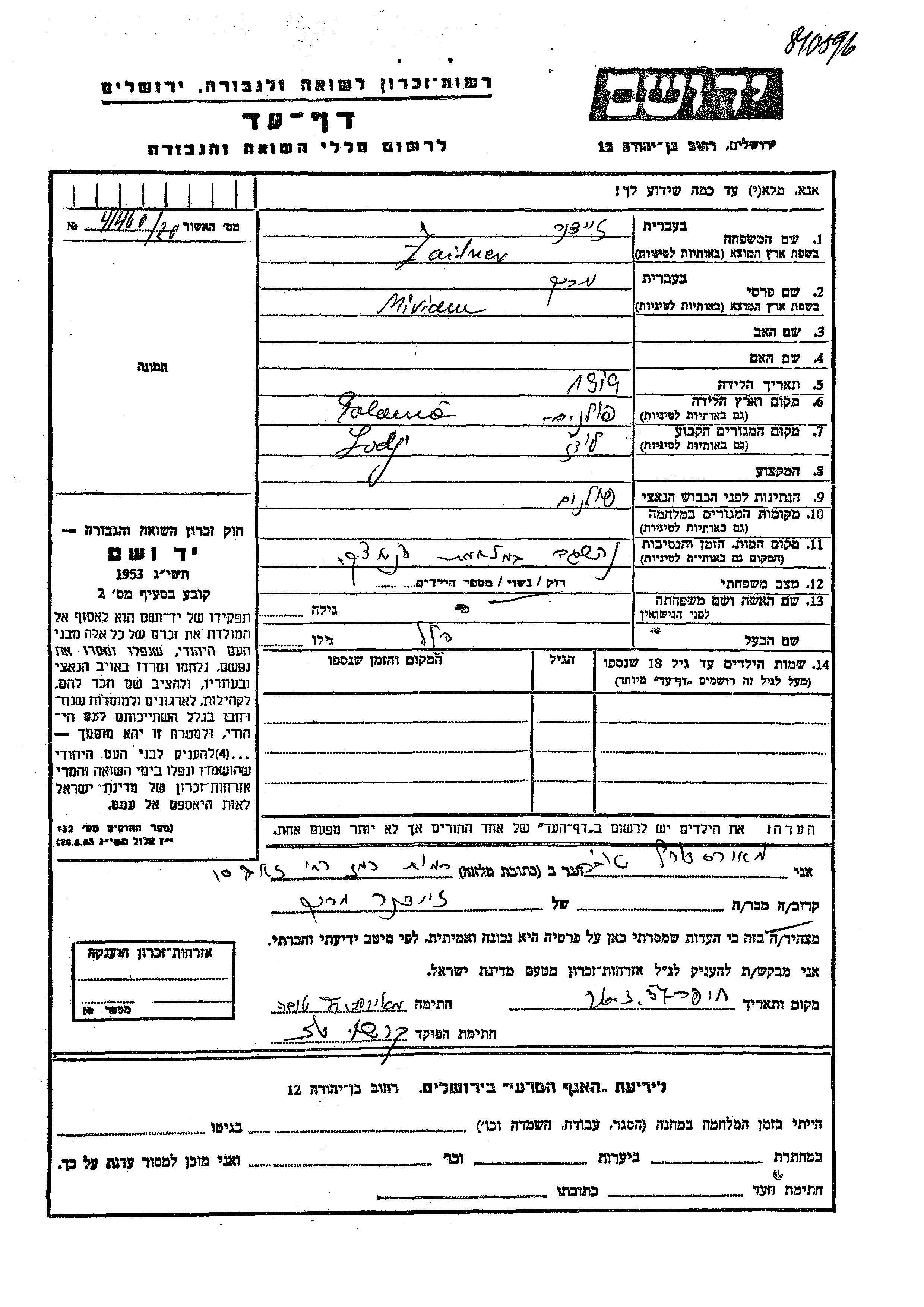 Yad Vashem - Pages of Testimony Names Memorial Collection