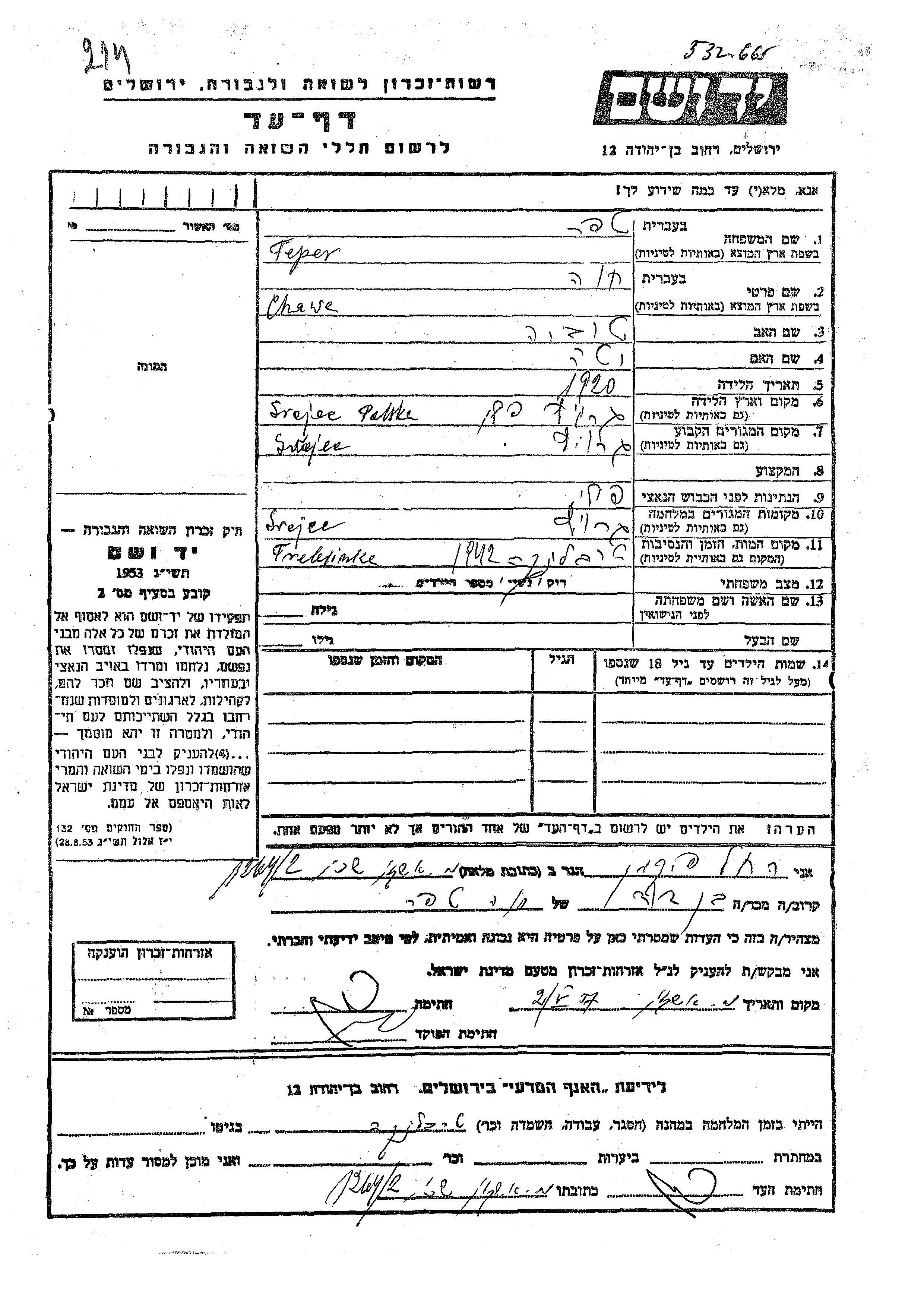 Yad Vashem - Pages of Testimony Names Memorial Collection