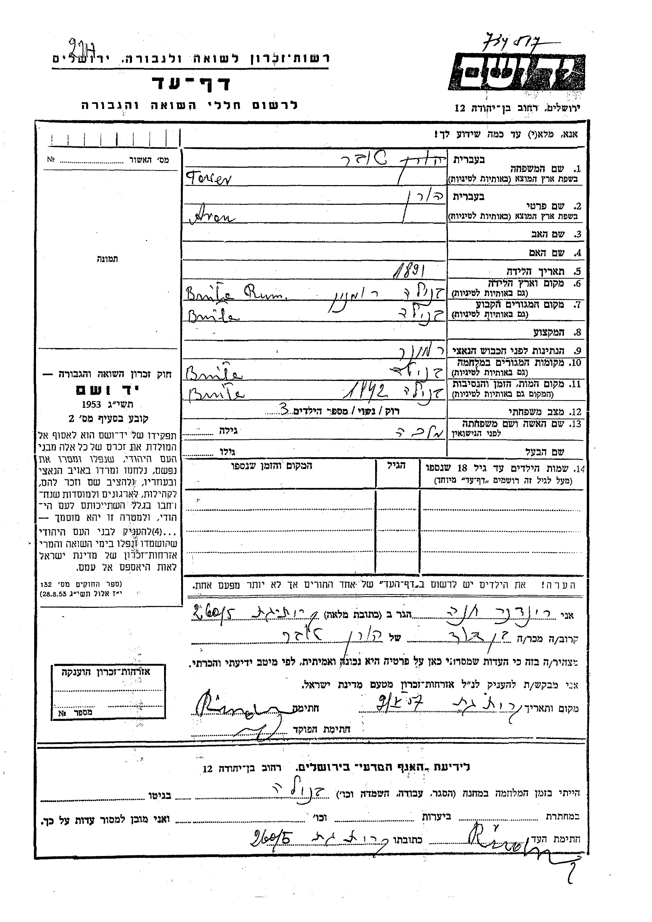 Yad Vashem - Pages of Testimony Names Memorial Collection