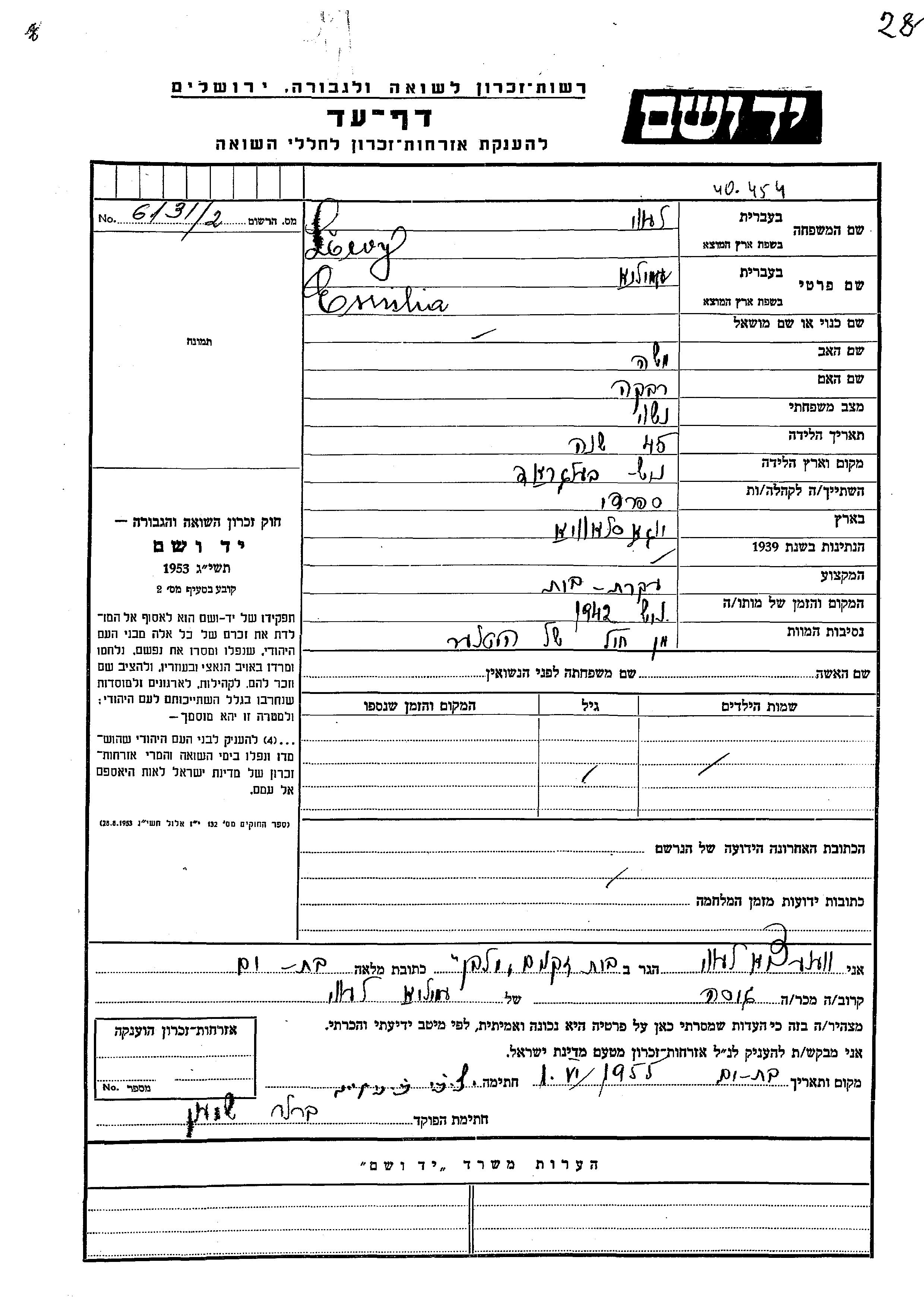 Yad Vashem - Pages of Testimony Names Memorial Collection