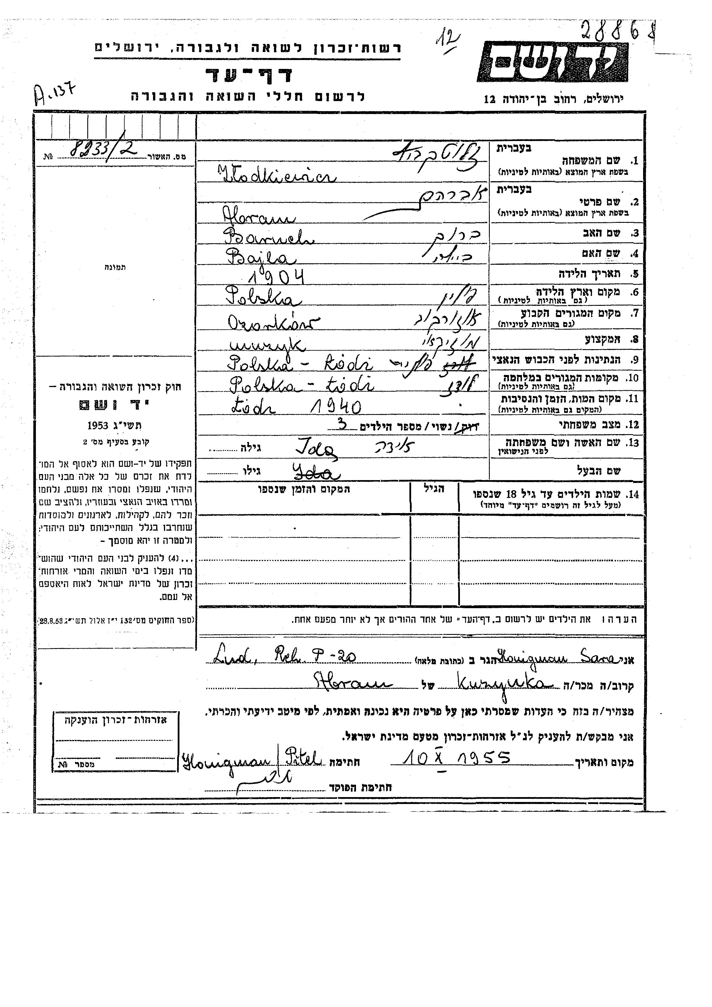 Yad Vashem - Pages of Testimony Names Memorial Collection
