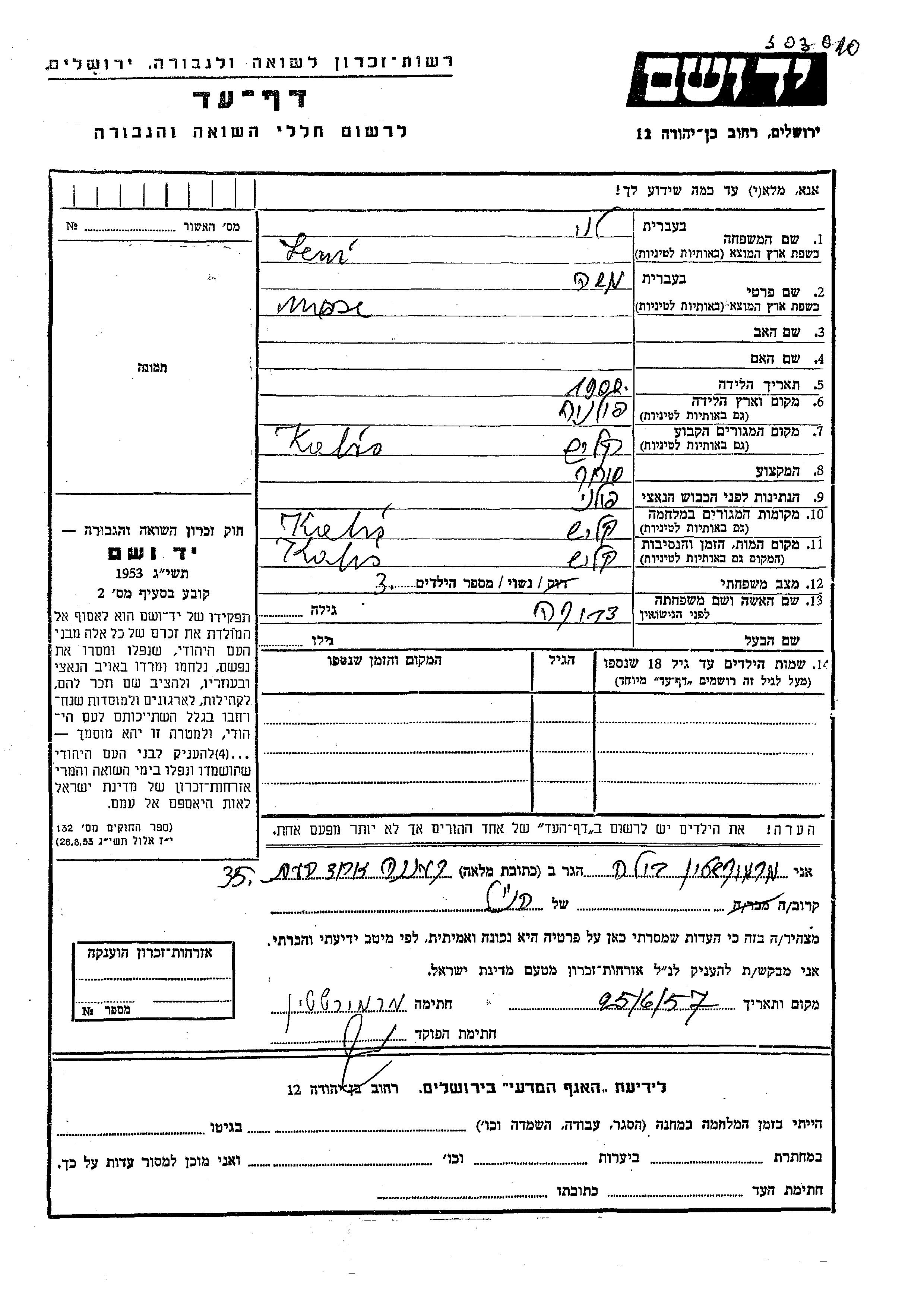 Mosze Lewi est né à Pologne en 1900. Il était Commerçant/e et Mariée à Dvora. Avant la seconde guerre mondiale il vivait à Kalisz, Pologne. Au cours de la guerre, il était à Kalisz, Pologne.