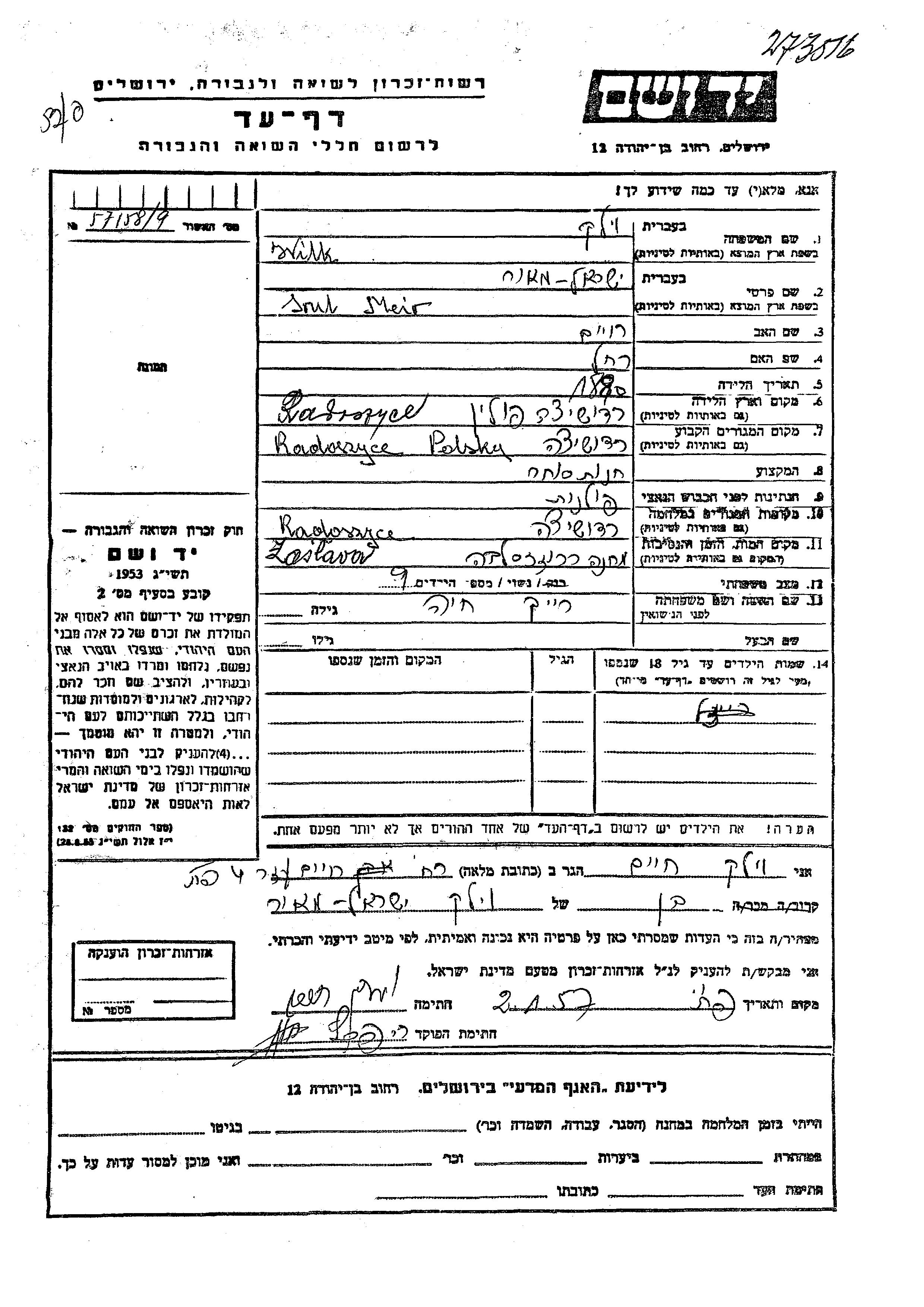 Wilk Srul Meir 1890 Radoszyce, Pologne Feuille de témoignage