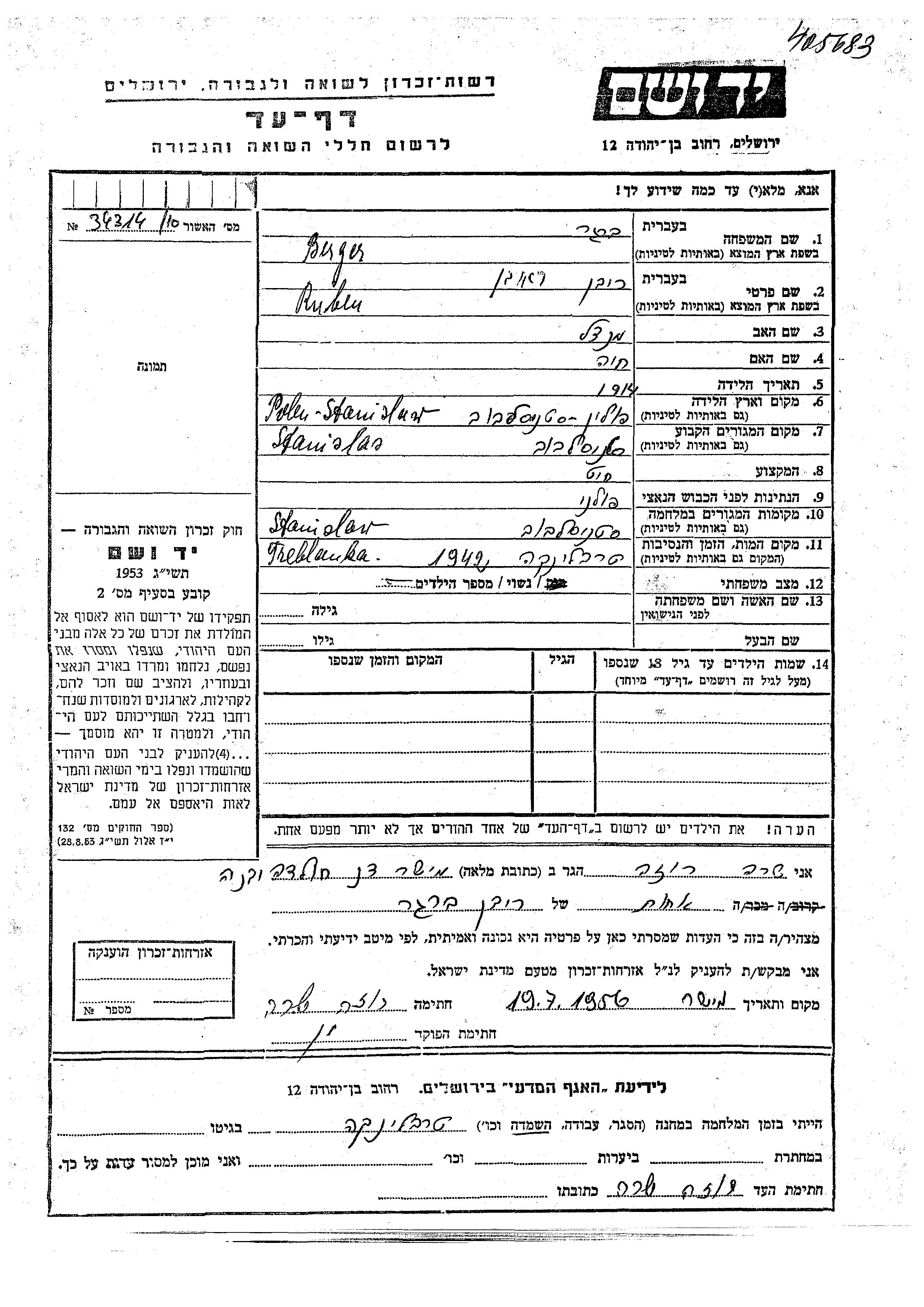 Yad Vashem - Pages of Testimony Names Memorial Collection