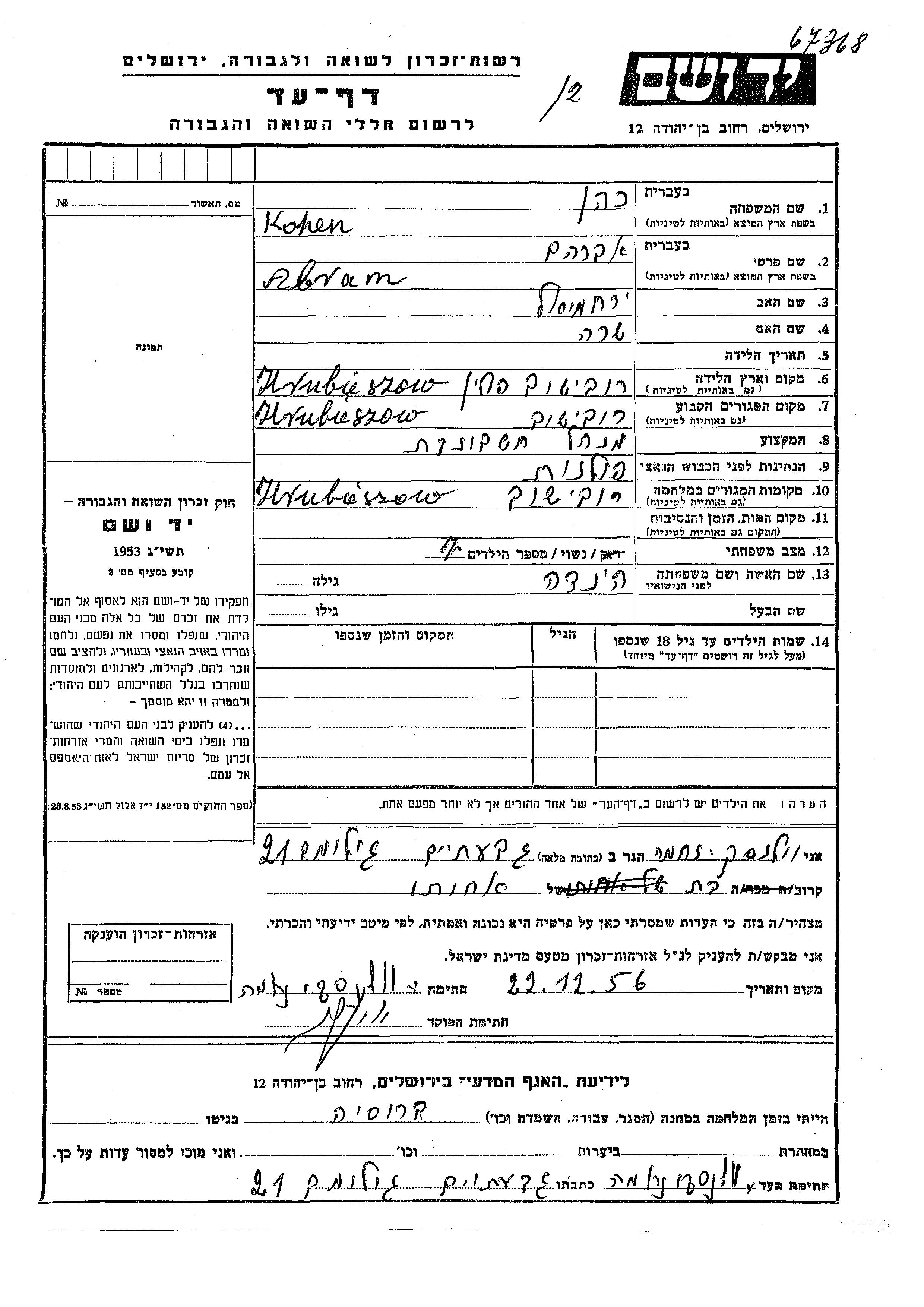 Recherche par lieu de résidence permanente avant la Shoah, ville, village, département, région ou pays.