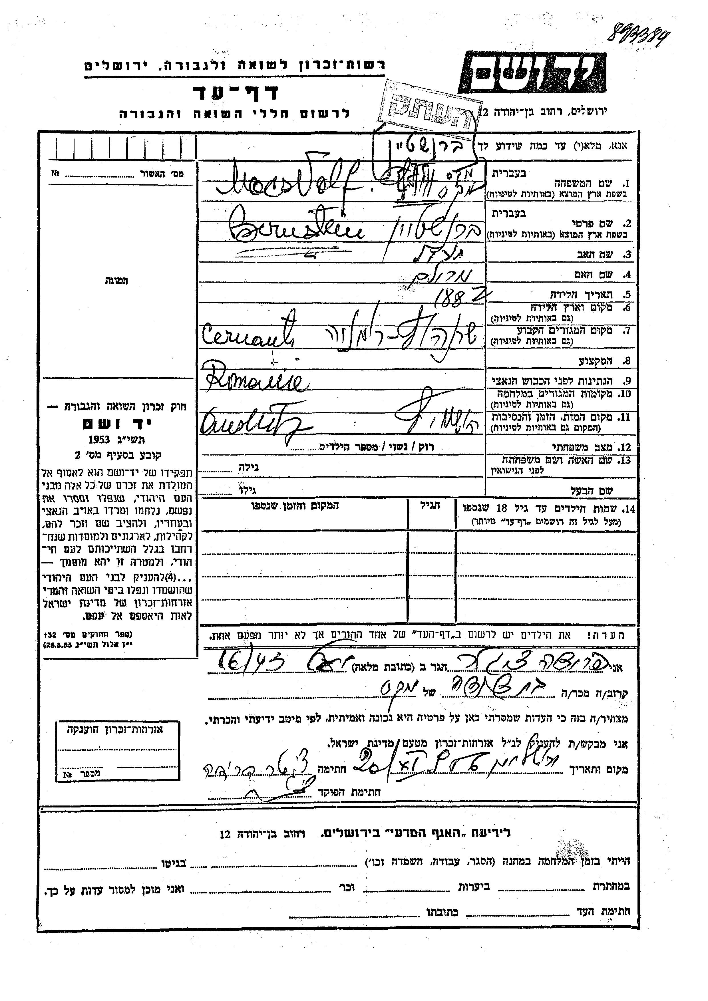 Yad Vashem - Pages of Testimony Names Memorial Collection