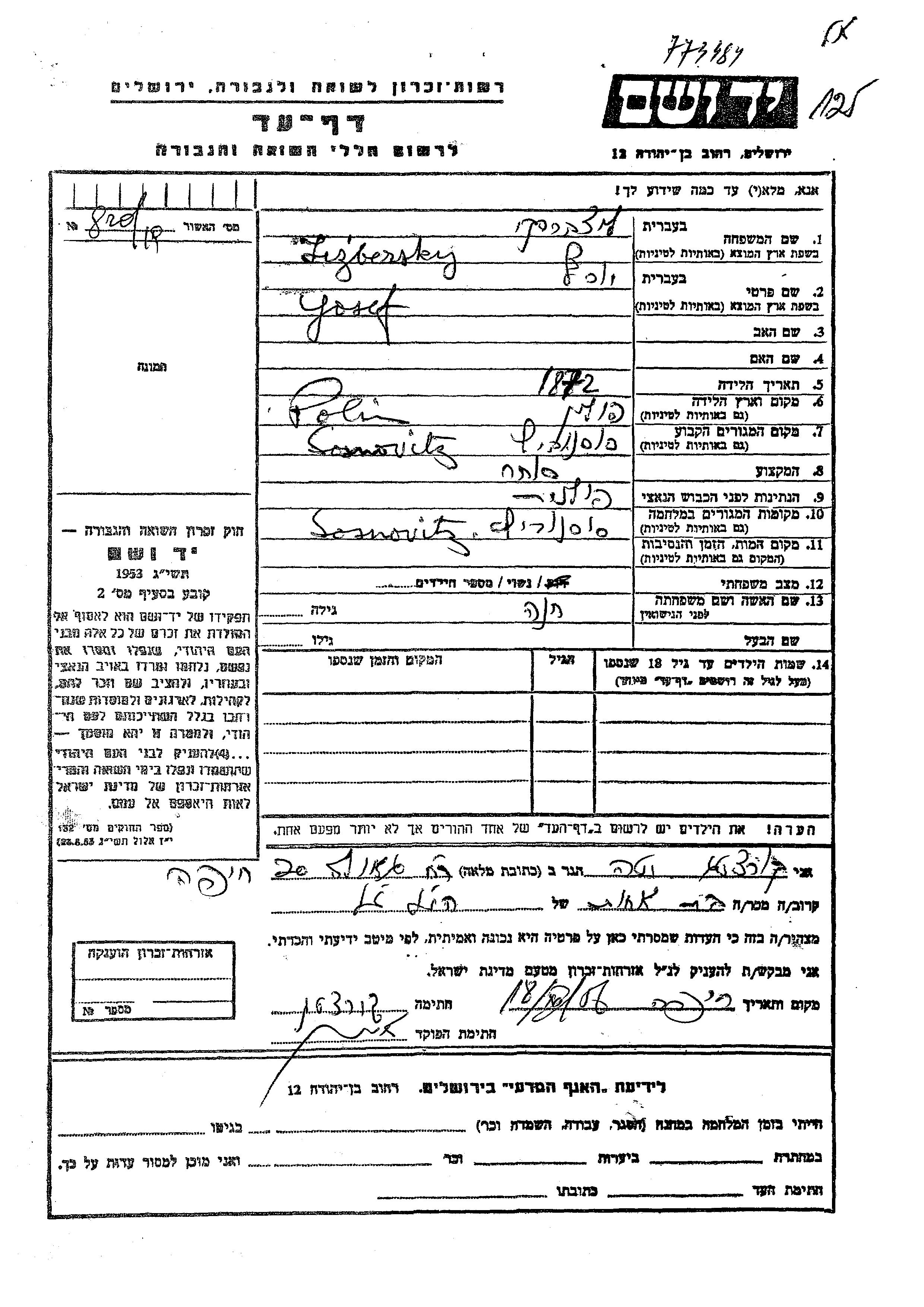 Yad Vashem - Pages of Testimony Names Memorial Collection