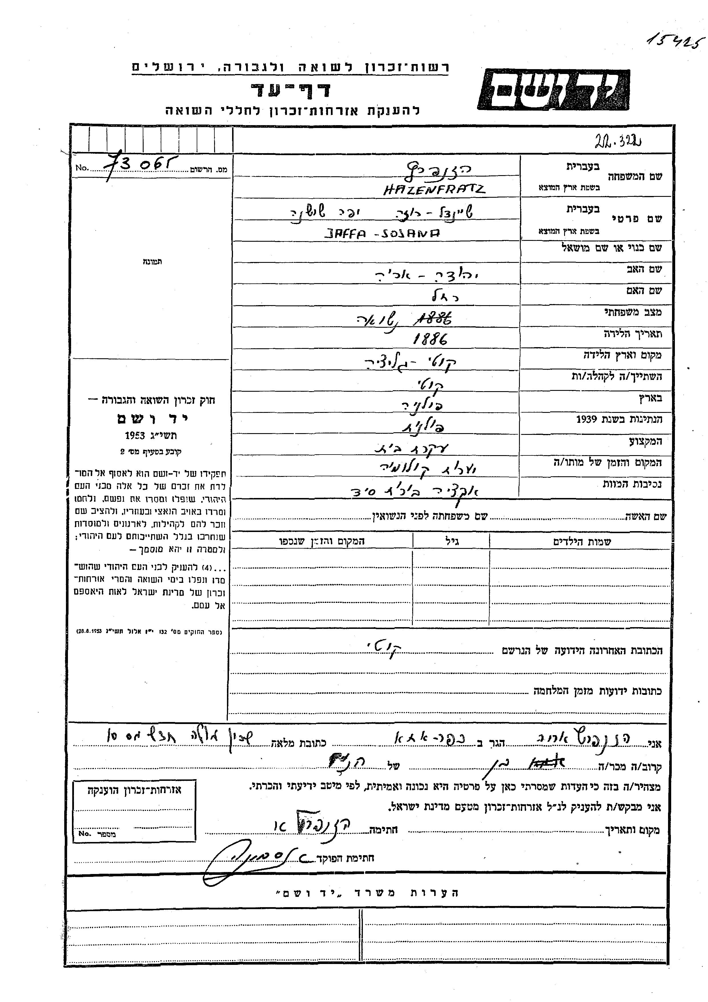 Yad Vashem - Pages of Testimony Names Memorial Collection
