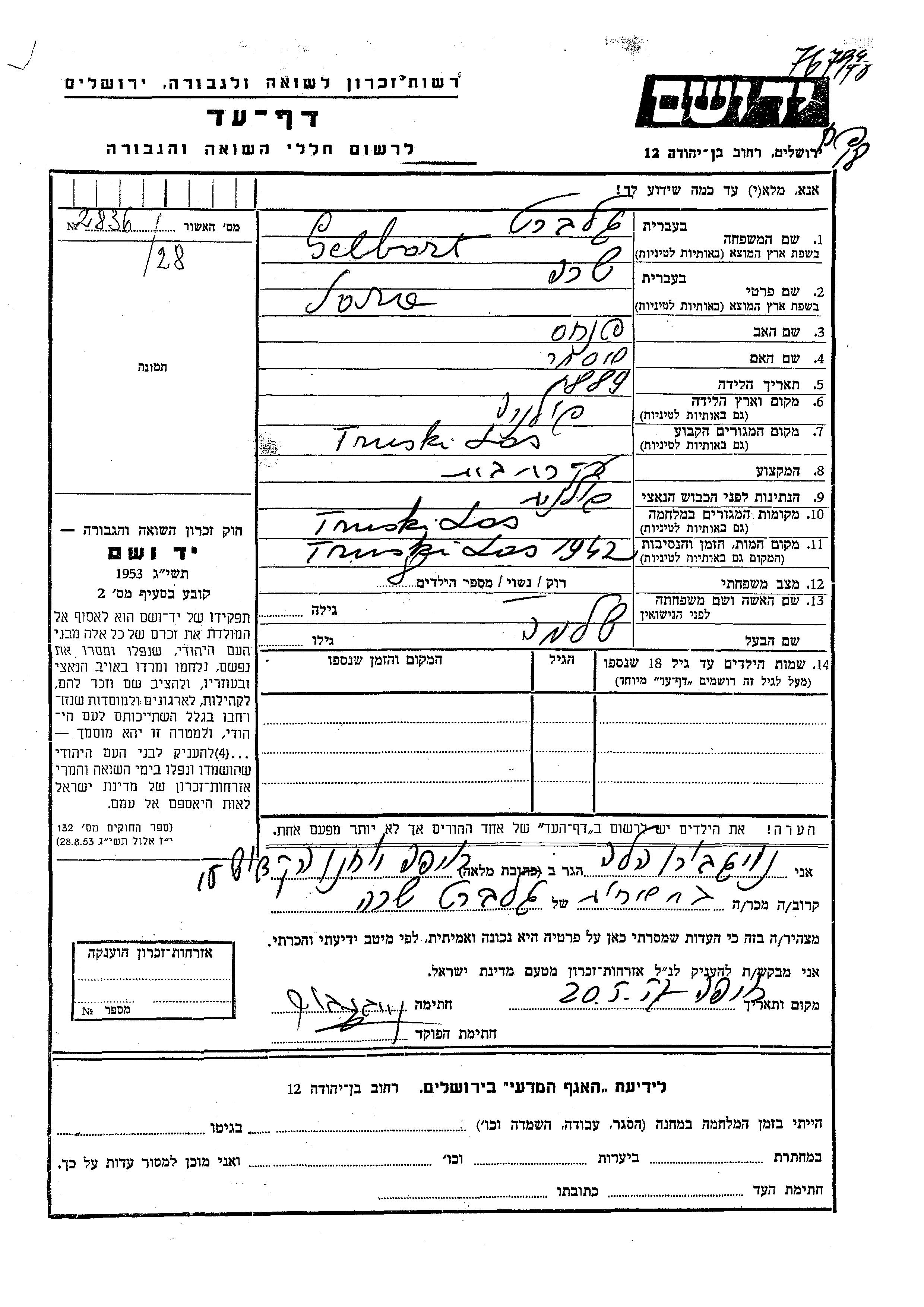 Yad Vashem - Pages of Testimony Names Memorial Collection