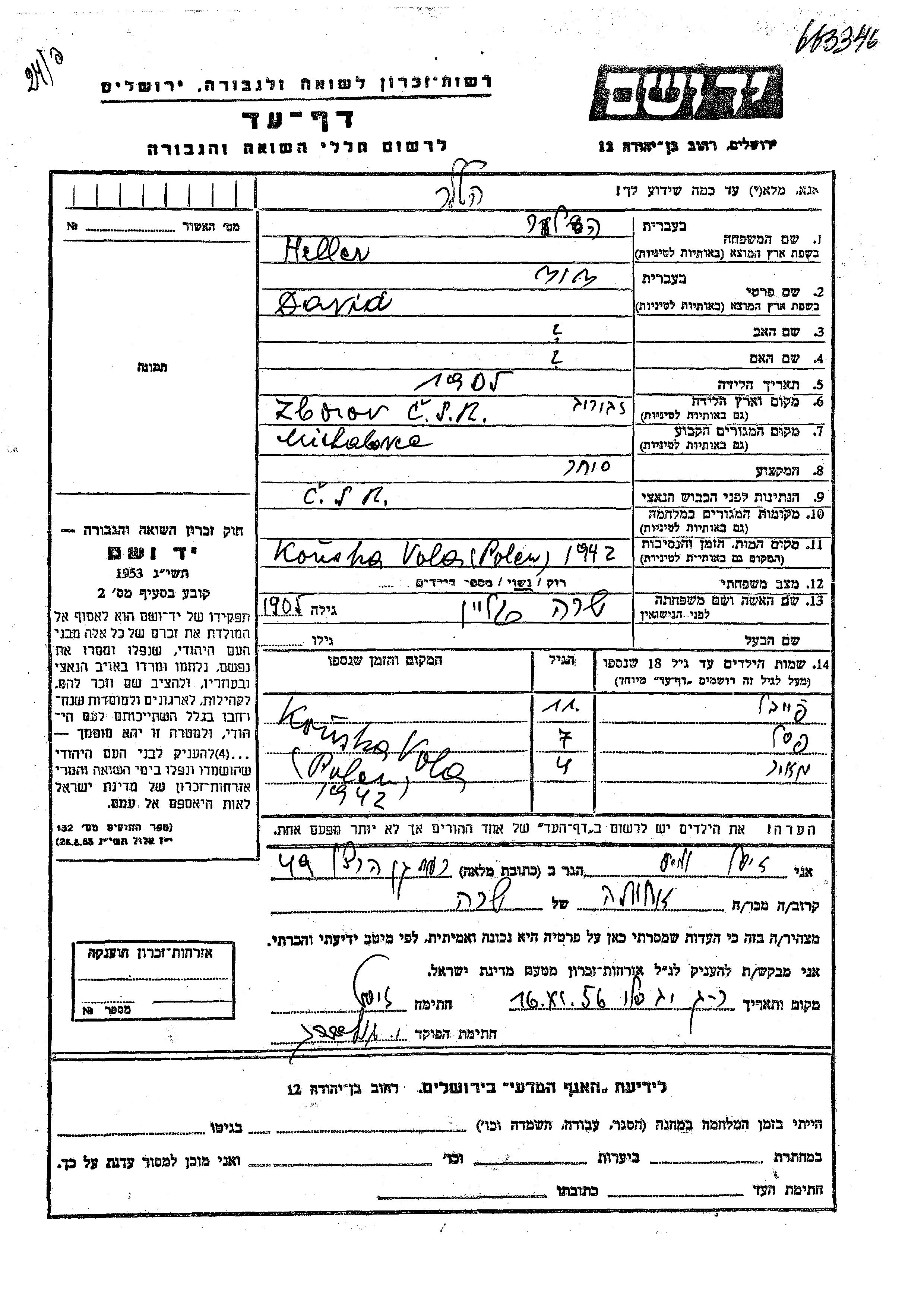Heller David 1905 Michalovce, Tchécoslovaquie Feuille de témoignage