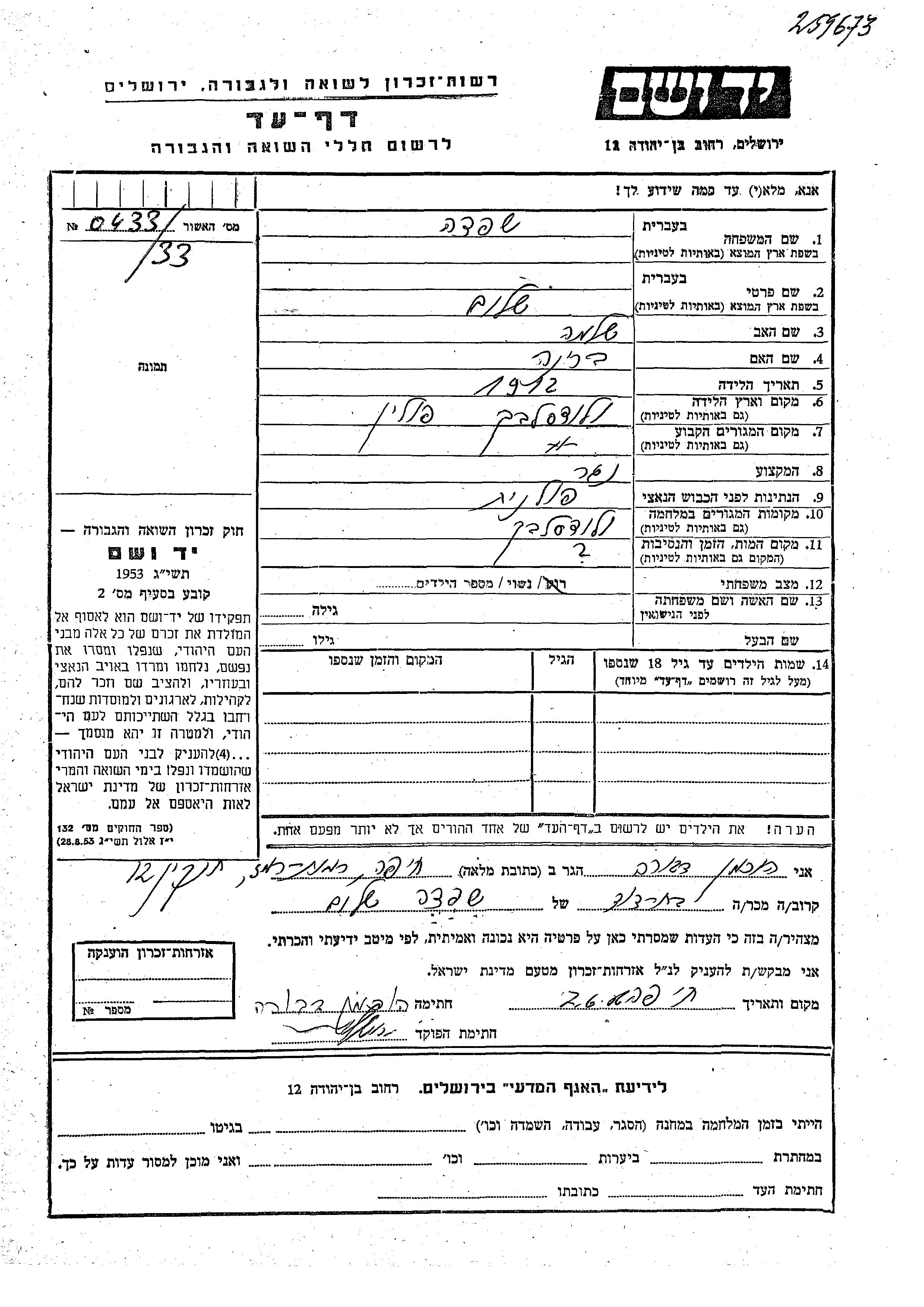 Yad Vashem - Pages of Testimony Names Memorial Collection