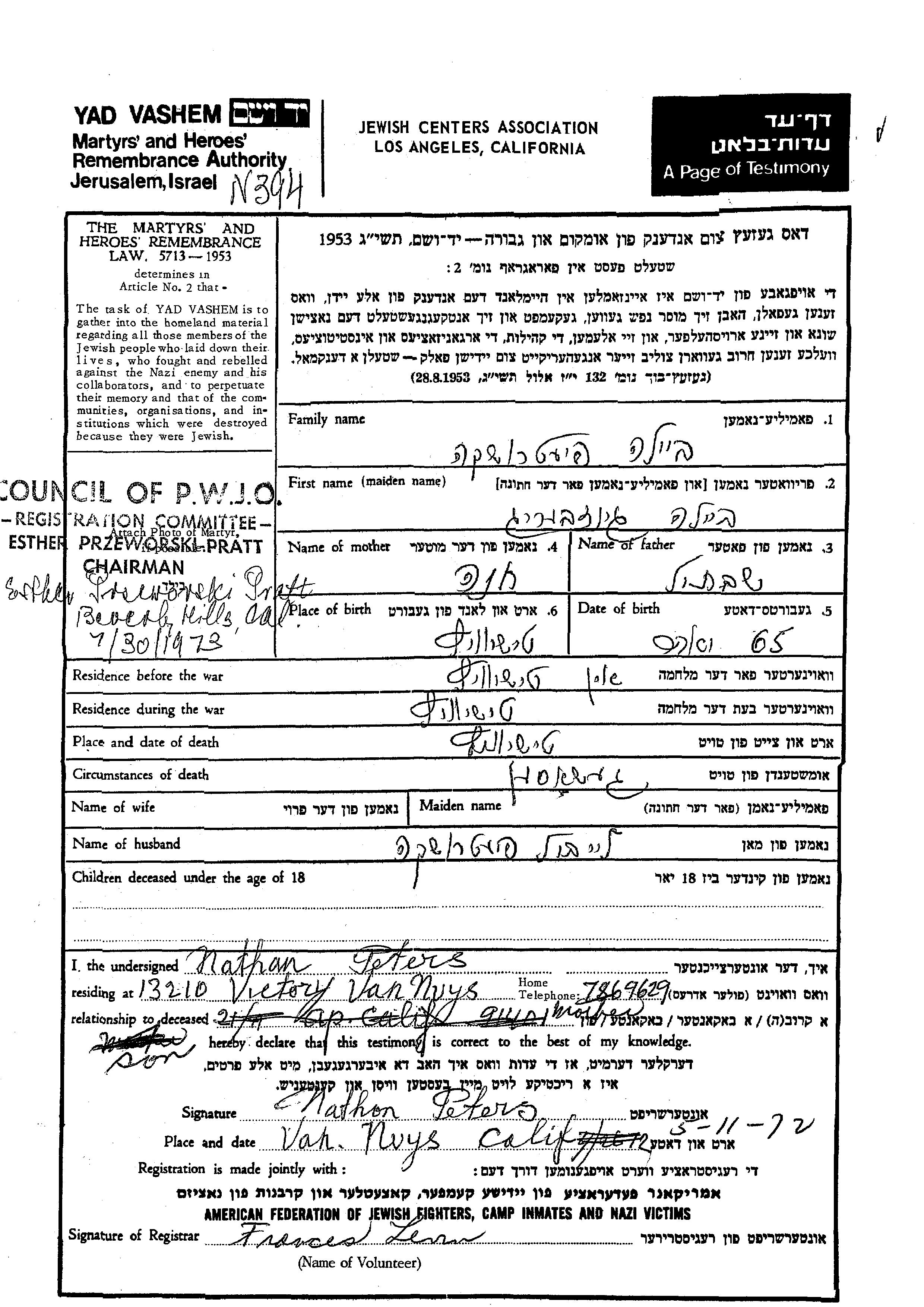 Yad Vashem - Pages of Testimony Names Memorial Collection